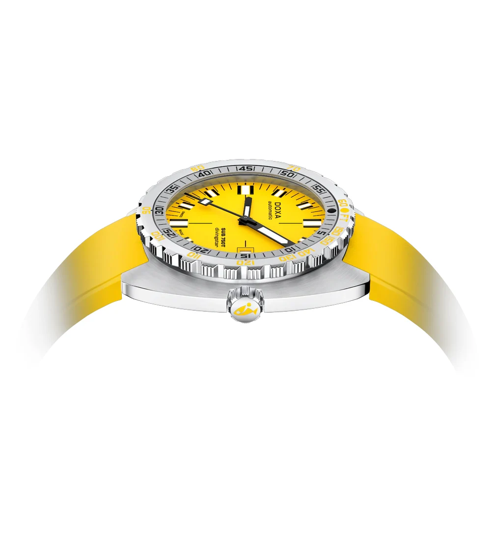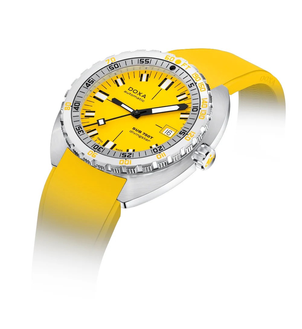 Doxa SUB 750T Divingstar 825.10.361.31 jsou potápěčské hodinky, které spojují výrazný žlutý ciferník s praktičností lehkého pryžového řemínku. Jsou navrženy pro potápěče, kteří si cení pohodlí během dlouhých podvodních výprav, aniž by museli slevit z plné funkčnosti. Barva ciferníku, dokonale viditelná i v náročných podmínkách, je již léta poznávacím znamením modelů Divingstar – symbolem bezpečnosti a spolehlivého odečtu času v každé fázi ponoru.