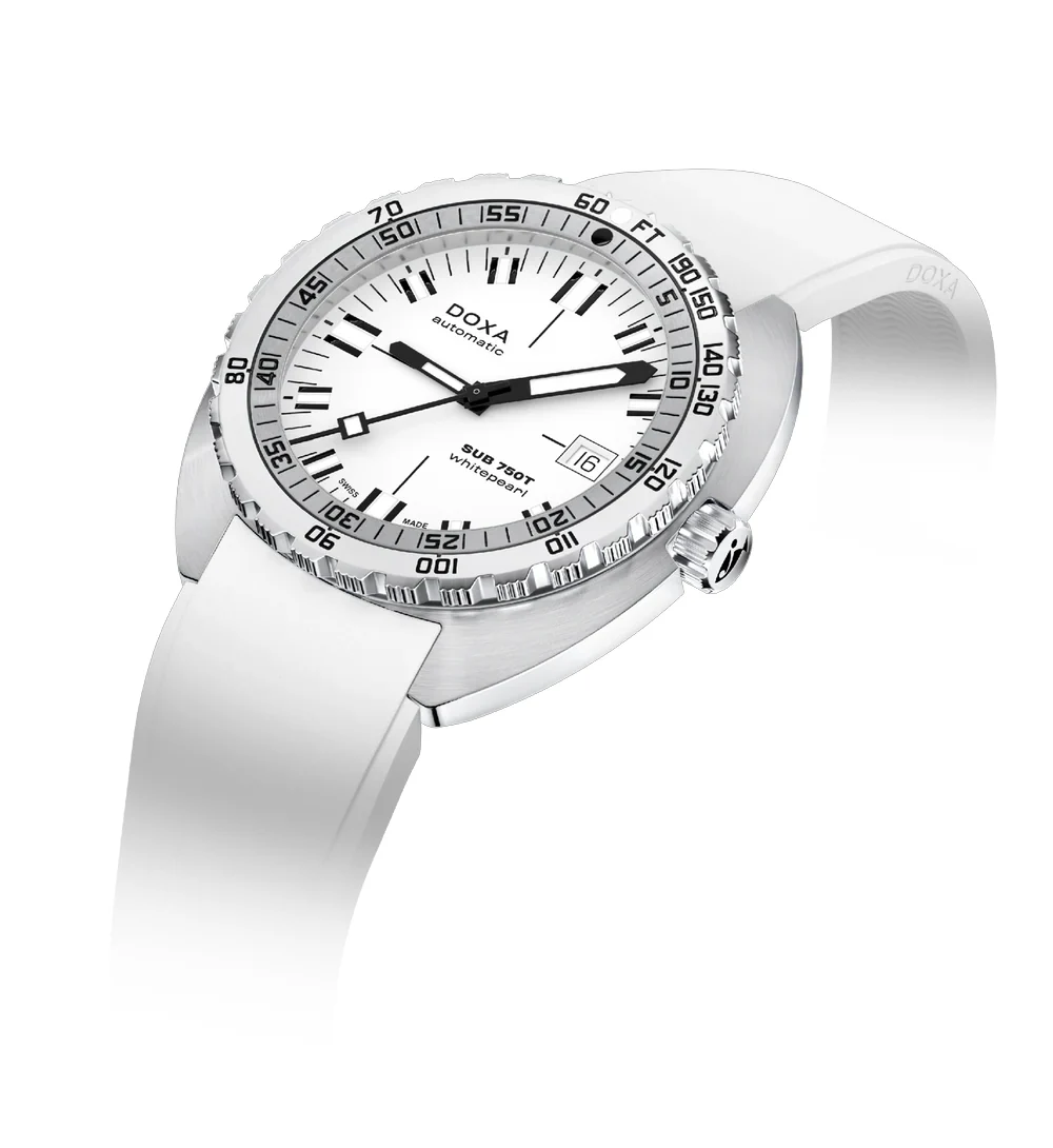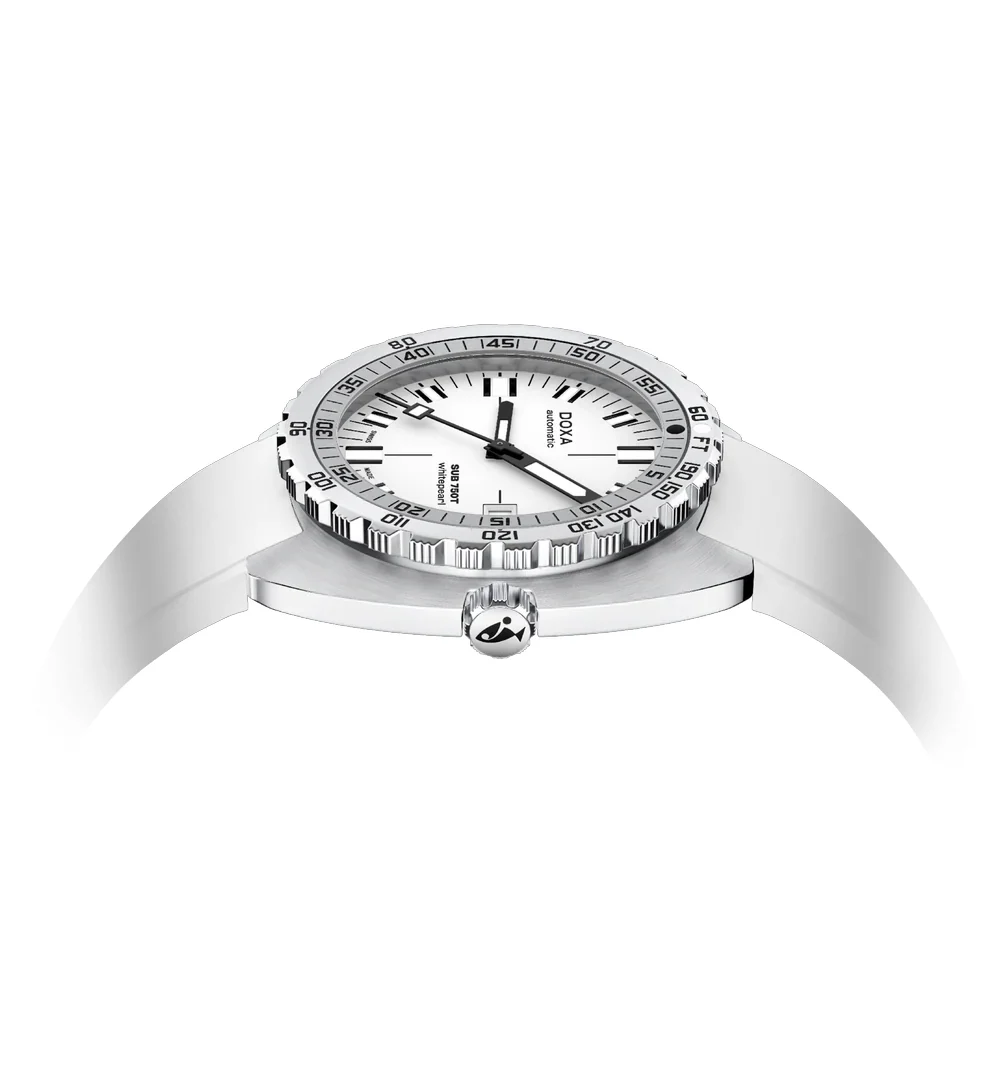 Doxa SUB 750T Whitepearl 825.10.011.23 je hodinky, které předefinují pojem čitelnosti ve světě profesionálních potápěčských modelů. Jejich bílý ciferník poskytuje mimořádný kontrast s masivními ručkami a velkými indexy, což zaručuje perfektní čitelnost jak pod vodou, tak i při každodenním nošení. Jsou ideální volbou pro ty, kteří hledají hodinky s minimalistickým vzhledem a zároveň plně profesionálními funkcemi.