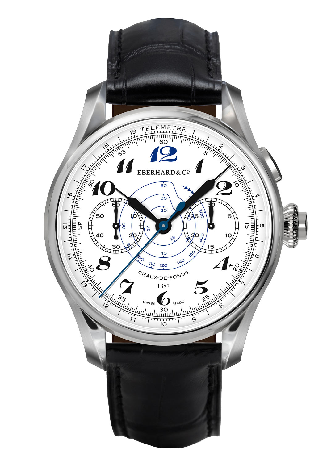 Uvnitř pouzdra hodinek Eberhard 1887 je instalován přesný automatický mechanismus EB 380, vycházející z Sellita AMT 5100. Jde o vynikající systém, který zajišťuje perfektní chod času a chronografu s velkou přesností. Tento model má navíc tachymetrickou stupnici, která udává rychlost pohybu na vzdálenost 1 km, a telemetrickou stupnici – funkci v hodinkách, která umožňuje měřit vzdálenost na základě času, který uplynul od zvuku (např. nebo záblesk) dosáhl pozorovatele. Všechny funkce a stupnice jsou umístěny na stříbrném ciferníku. Světlé pozadí ciferníku zdobené jemnými detaily zdůrazňuje eleganci, číslice a ručičky zajišťují vynikající čitelnost.