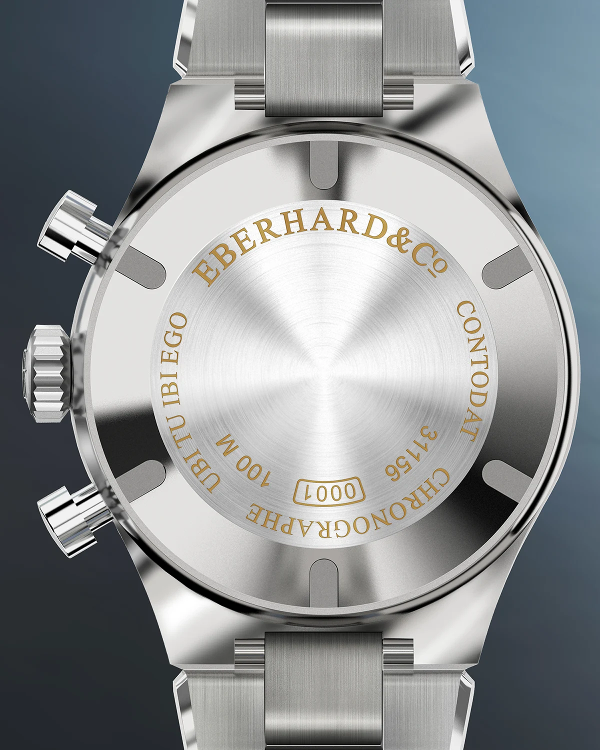 Jedním z výjimečných prvků tohoto modelu je jeho dýnko. Uprostřed se nachází zlatý gravírovaný nápis v latině: „UBI TU IBI EGO“ – „Kde jsi ty, tam jsem i já.“ Není to jen motto, ale slib trvalosti a spojení mezi majitelem a jeho hodinkami – symbol hodnot, které přetrvávají desetiletí a tvoří základ filozofie Eberhard & Co. Každý kus je proto víc než pouhým nástrojem pro měření času – je osobním společníkem a dědictvím předávaným z generace na generaci.