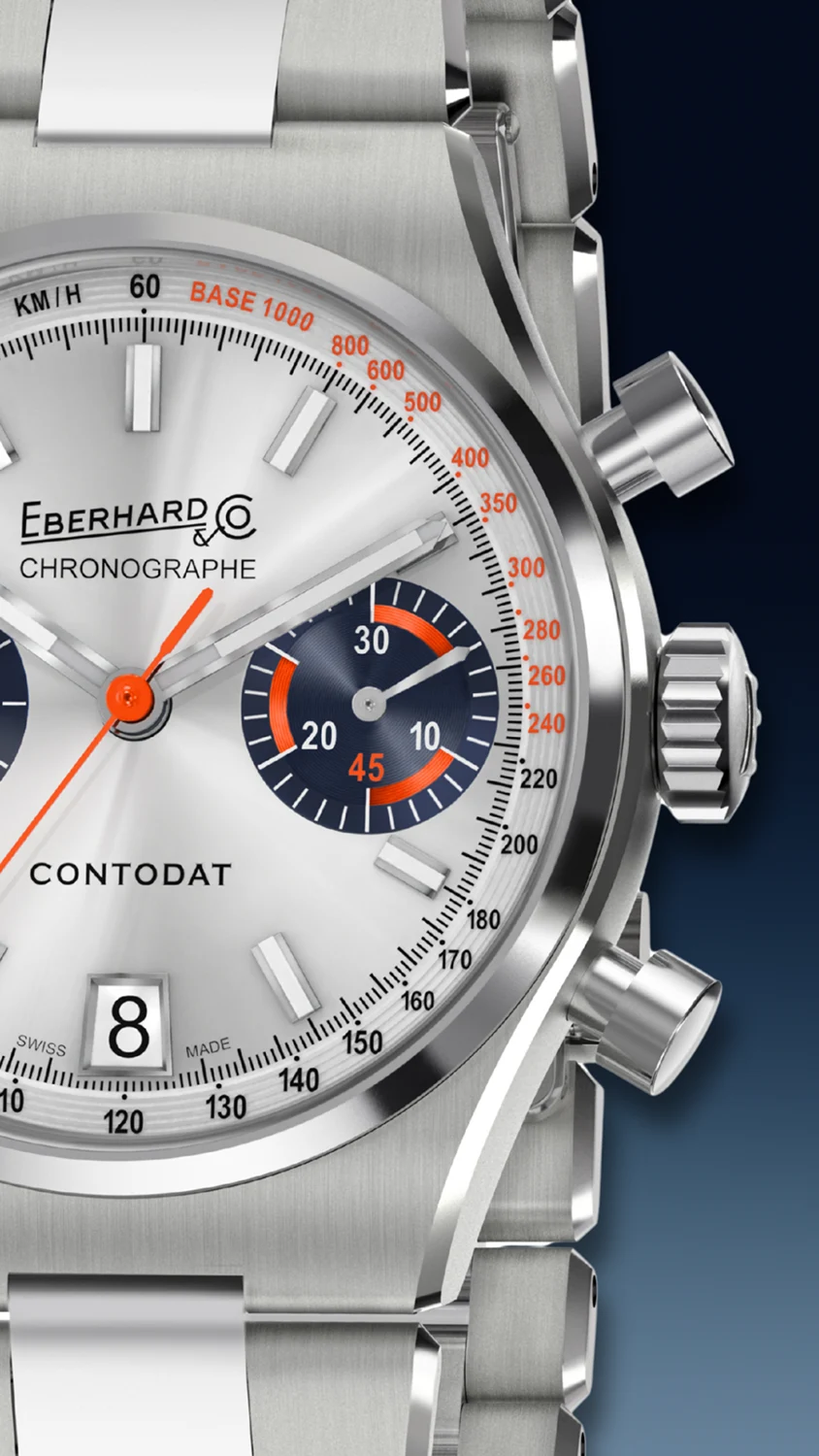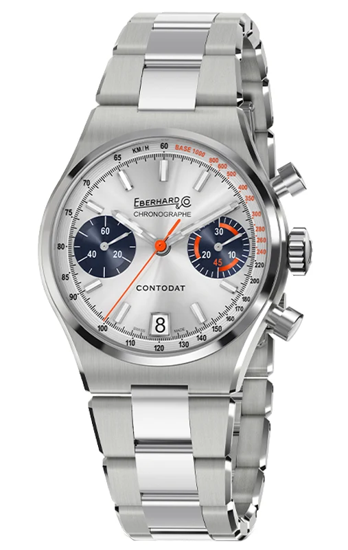 Model je dodáván na integrovaném ocelovém náramku s kombinací saténového a leštěného povrchu, vybaveném patentovaným zapínáním 2CLICK®. Toto řešení spojuje bezpečnost s komfortem nošení a dotváří harmonický, elegantní celek. Eberhard Contodat Chronographe 31156.03 CA2C je volbou pro muže, kteří si cení autenticity, historie a nenápadné síly designu. Jeho stříbrný číselník vyjadřuje čistotu stylu – dokonalou rovnováhu mezi sportovní funkčností a švýcarskou jemností.