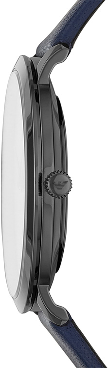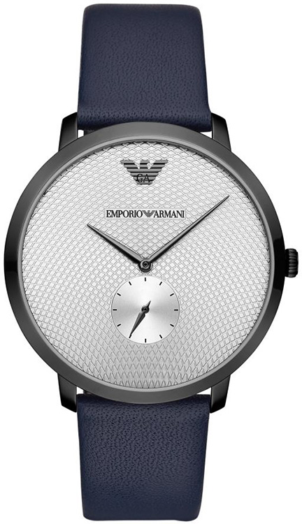 Pánské hodinky Emporio Armani Modern Slim AR11214 s krásně zdobeným ciferníkem stříbrné barvy a malou vteřinovou ručkou na pozici šestky. Ve 12 hodin se hrdě vystavuje logo Armani. Elegantní pouzdro je pokryto černou vrstvou, která dokonale ladí s tmavě modrým řemínkem.