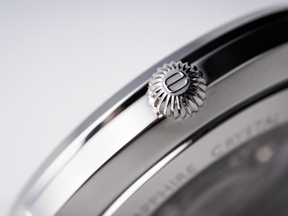Epos Originale Retro Skeleton 3437.135.20.18.30 v sobě spojuje kouzlo 50. let s nádherným vzhledem skeletového Machineku Sellita SW 200. Retro hodinky EPOS se vyznačují zakřiveným a skeletovým ciferníkem, který prozrazuje nádherně zpracovaný automatický Machineek. Kromě výřezů má ciferník vzor, který elegantním způsobem šíří světelné paprsky, vystupující indexy s luminiscenční hmotou, která je i na ručičkách. Kvalitní skeletové hodinky EPOS 3437SK mají tenké pouzdro se silně zakřiveným safírovým sklíčkem. Díky tloušťce pouhých 9,9 milimetrů a průměru 38,5 milimetrů se hodinky velmi pohodlně nosí.