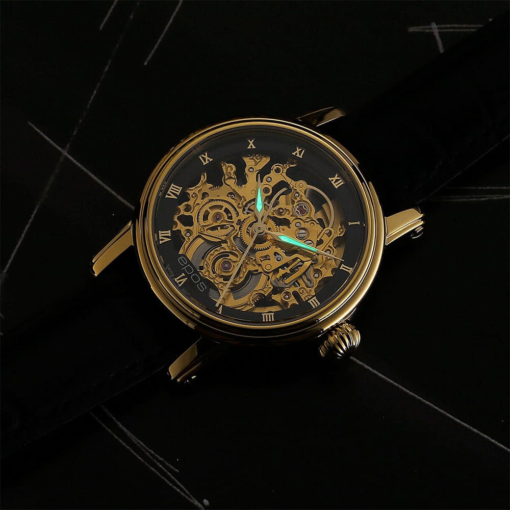 Švýcarská hodinářská značka Epos představuje Epos Ladies 4390 SK Skeleton 4390.156.22.25.15 pozlacené dámské náramkové hodinky s propracovaným designem a skeletovým ciferníkem. Epos 4390 SK Skeleton jsou hodinky pro elegantní ženy, jejichž první volbou je klasický a jedinečný design.