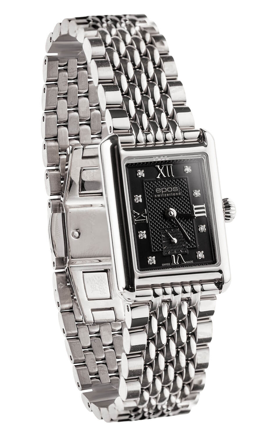 Dámské hodinky s diamanty Epos Ladies 8002.702.20.85.30 jsou určeny ženám, které spojují klasickou eleganci s vytříbeným vkusem. Jejich obdélníkový tvar evokuje styl art déco a šperkařský charakter zajišťuje, že dokonale ladí jak s business kostýmem, tak s večerní róbou. Jsou určeny ženám, které si cení detailů, preciznosti a jemného lesku švýcarského řemesla.