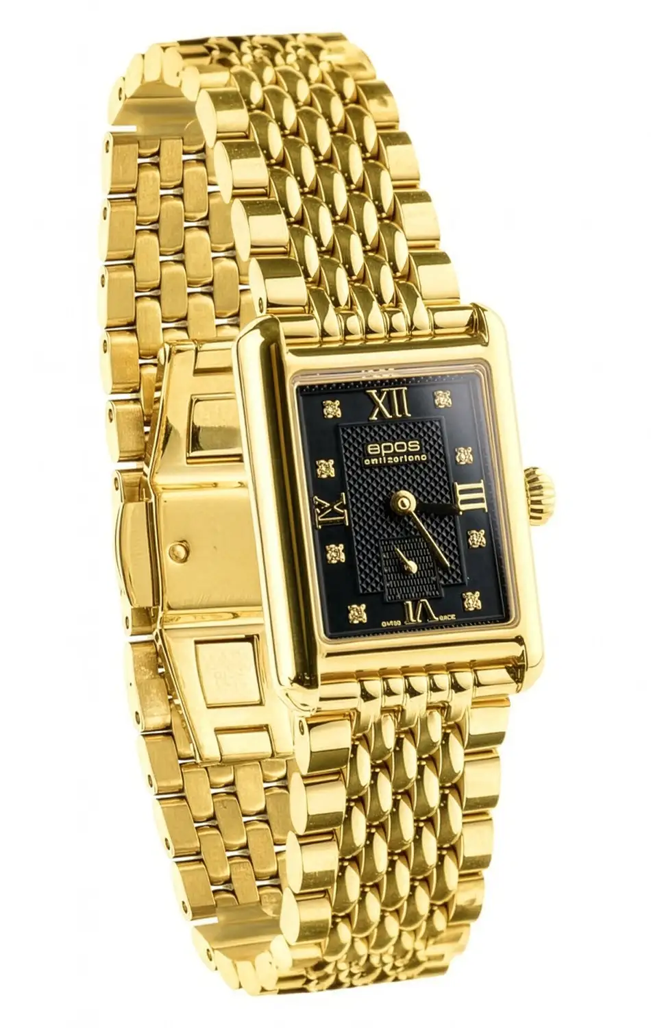 Pouzdro s geometrickou linií a přizpůsobený náramek tvoří jednotný, harmonický celek. Zlatá vrstva PVD dodává celku ušlechtilý tón a safírové sklo chrání číselník před poškrábáním, což zaručuje dlouhotrvající lesk a bezchybný vzhled. Hodinky se vyznačují jemností provedení, charakteristickou pro manufakturu Epos — značku, která již léta pěstuje tradici klasického hodinářství.