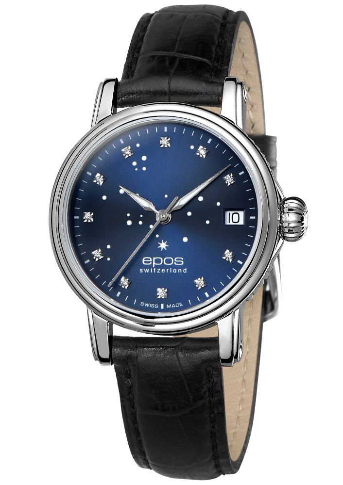 Do dámské kolekce švýcarské značky Epos přibyl nový, šik výtvor. Dámské hodinky Epos 4390 North Star mají zářící polárku na číselníku jako vodítko v noci a 11 diamantů třpytivých v jasném denním světle.