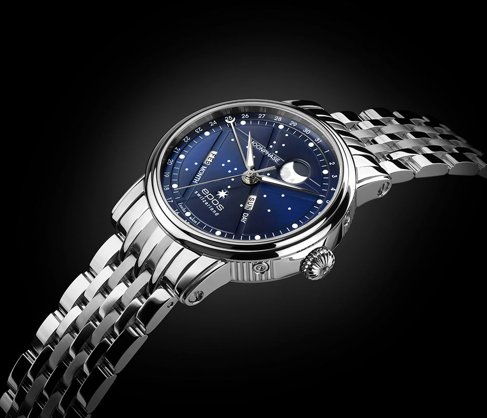 Švýcarští řemeslníci EPOS si díky mnohaleté praxi vydobyli pověst hodinářských průkopníků, což se promítá do dokonalé preciznosti a estetiky viditelné v nejmenších detailech povrchové úpravy. Výrobce neváhá ukázat, jak vypadá mechanismus, který je srdcem hodinek. U tohoto modelu lze jeho práci obdivovat skrz průhledná zadní strana pouzdra. Na povrch rotoru byl aplikován složitý perlační vzor. Dalším stylovým prvkem hodinek je náramek z nerezové oceli stříbrné barvy. Vlastnosti tohoto materiálu učiní texturu úlomku vysoce odolnou proti zmatnění a korozi a zachová si svou jedinečnou barvu v estetickém stavu po mnoho let. Náramek má také bezpečnou motýlkovou sponu se dvěma knoflíky , která jej ochrání před nechtěným otevřením, a také pětiřadý spojovací systém, který usnadní nasazení na zápěstí. Pohyb modelu hodinek ETA 2892 je plně automatický a činnost jeho práce je určována pohybem ruky při každodenním používání. Třída vodotěsnosti je 5 bar , 50 m , což svému majiteli umožní koupat se s hodinkami na zápěstí.