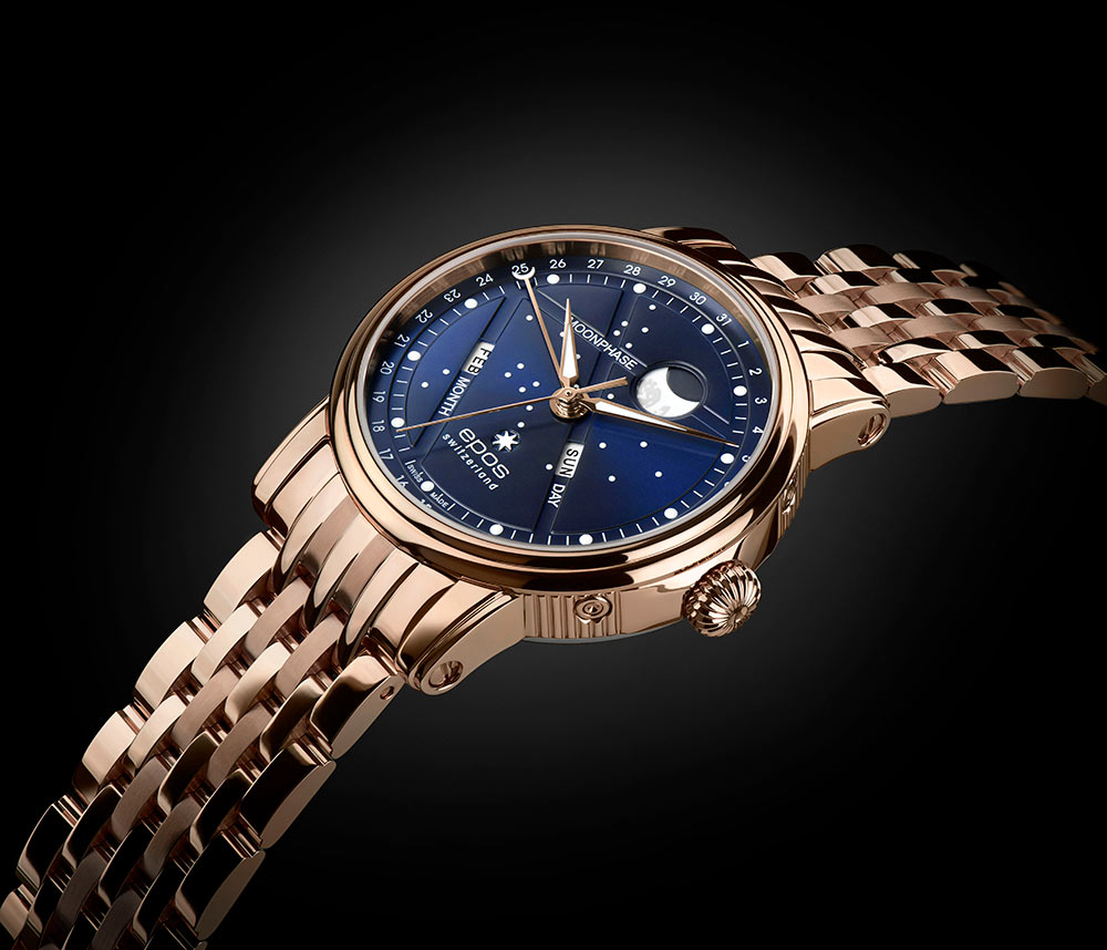 Švýcarští řemeslníci EPOS se díky mnohaleté praxi stali průkopníky hodinářské výroby, což se promítá do dokonalé preciznosti a estetiky viditelné v nejmenších detailech povrchové úpravy. Výrobce neváhá ukázat, jak vypadá mechanismus, který je srdcem hodinek. U tohoto modelu lze jeho práci obdivovat skrz průhledná zadní strana pouzdra. Na povrch rotoru byl aplikován složitý perlační vzor. Dalším stylovým prvkem hodinek je náramek s PVD povlakem z růžového zlata. Technologie PVD činí texturu fragmentu vysoce odolnou proti oděru a zachová si svou jedinečnou barvu v estetickém stavu po mnoho let. Náramek má také bezpečnou motýlkovou sponu se dvěma knoflíky , která jej ochrání před nechtěným otevřením, a také pětiřadý spojovací systém, který usnadní nasazení na zápěstí. Pohyb modelu hodinek ETA 2892 je plně automatický a činnost jeho práce je určována pohybem ruky při každodenním používání. Třída vodotěsnosti je 5 bar , 50 m , což svému majiteli umožní koupat se s hodinkami na zápěstí.