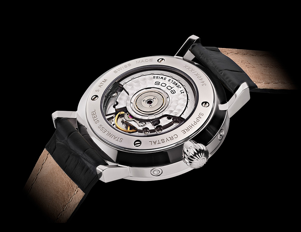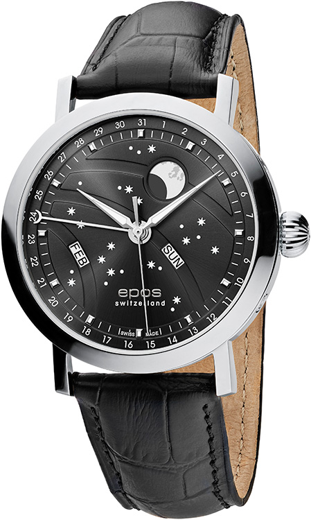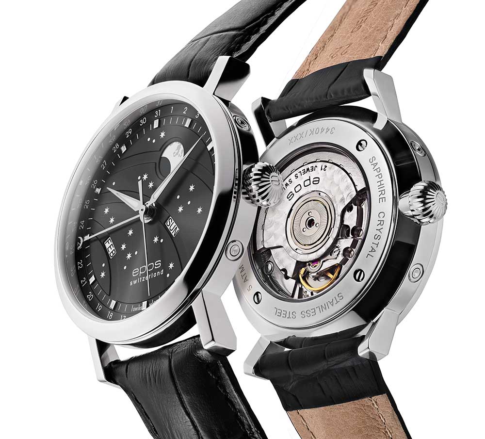 Inženýři Eposu na těchto hodinkách s fází nového měsíce pečlivě pracovali. Je poháněn osvědčeným automatickým Machinekem ETA 2892, krásně zdobený, má několik speciálních funkcí, jako je asymetrické umístění indikace dne a měsíce. Ciferník má výrazný vzhled, velký měsíc byl přesunut do horní části hodinek, aby získal výraznější pozici. Měsíc a hvězdy jsou navíc jasné a ve tmě září.