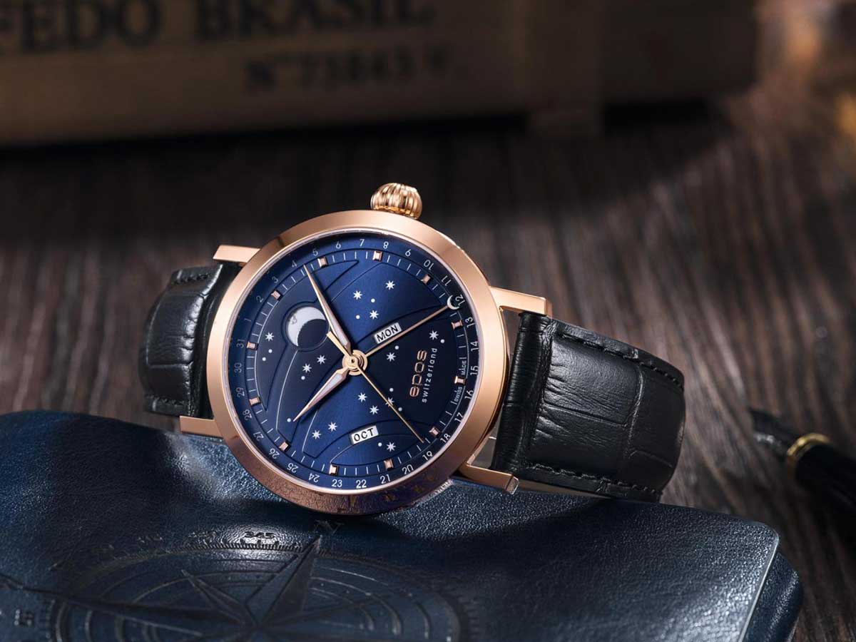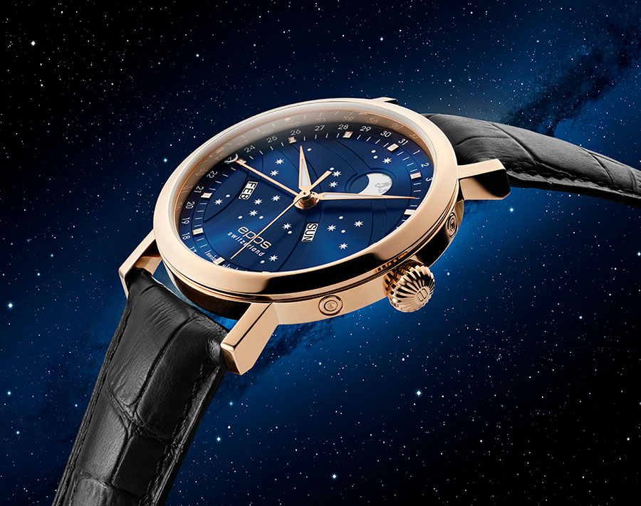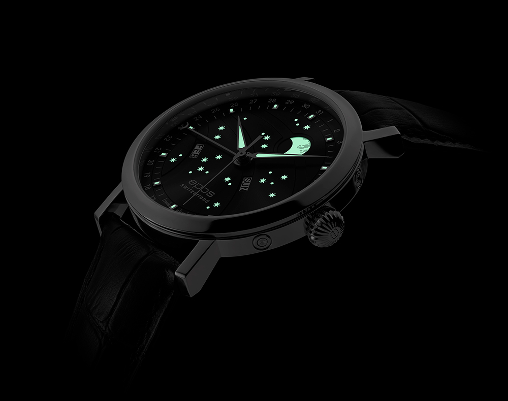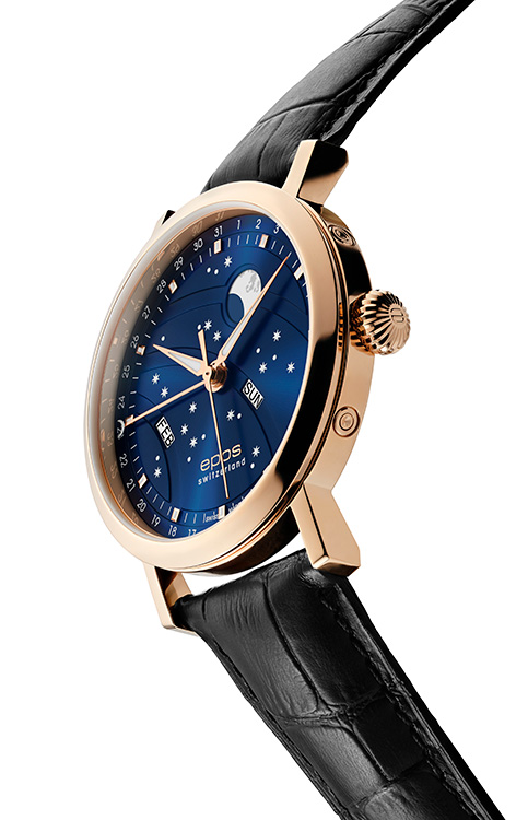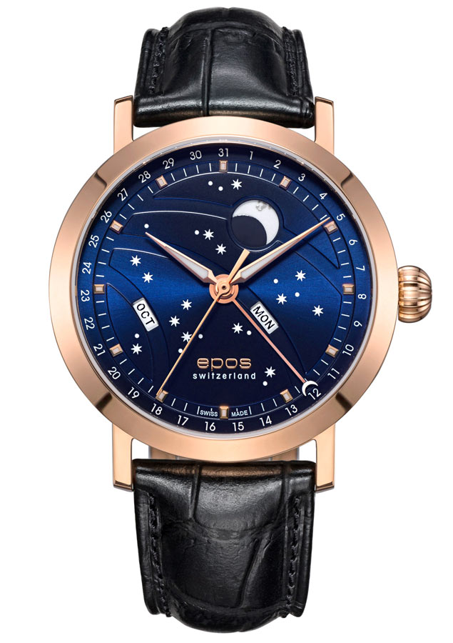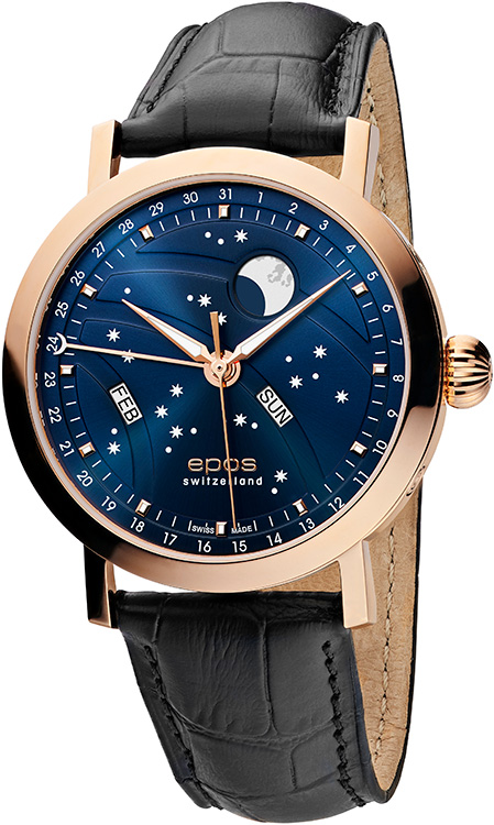 Inženýři Eposu na těchto hodinkách s fází nového měsíce pečlivě pracovali. Je poháněn osvědčeným automatickým Machinekem ETA 2892, krásně zdobený, má několik speciálních funkcí, jako je asymetrické umístění indikace dne a měsíce. Ciferník má výrazný vzhled, velký měsíc byl přesunut do horní části hodinek, aby získal výraznější pozici. Měsíc a hvězdy jsou navíc jasné a ve tmě září.