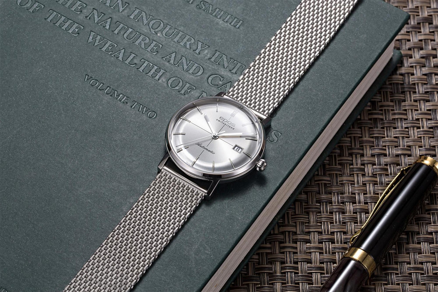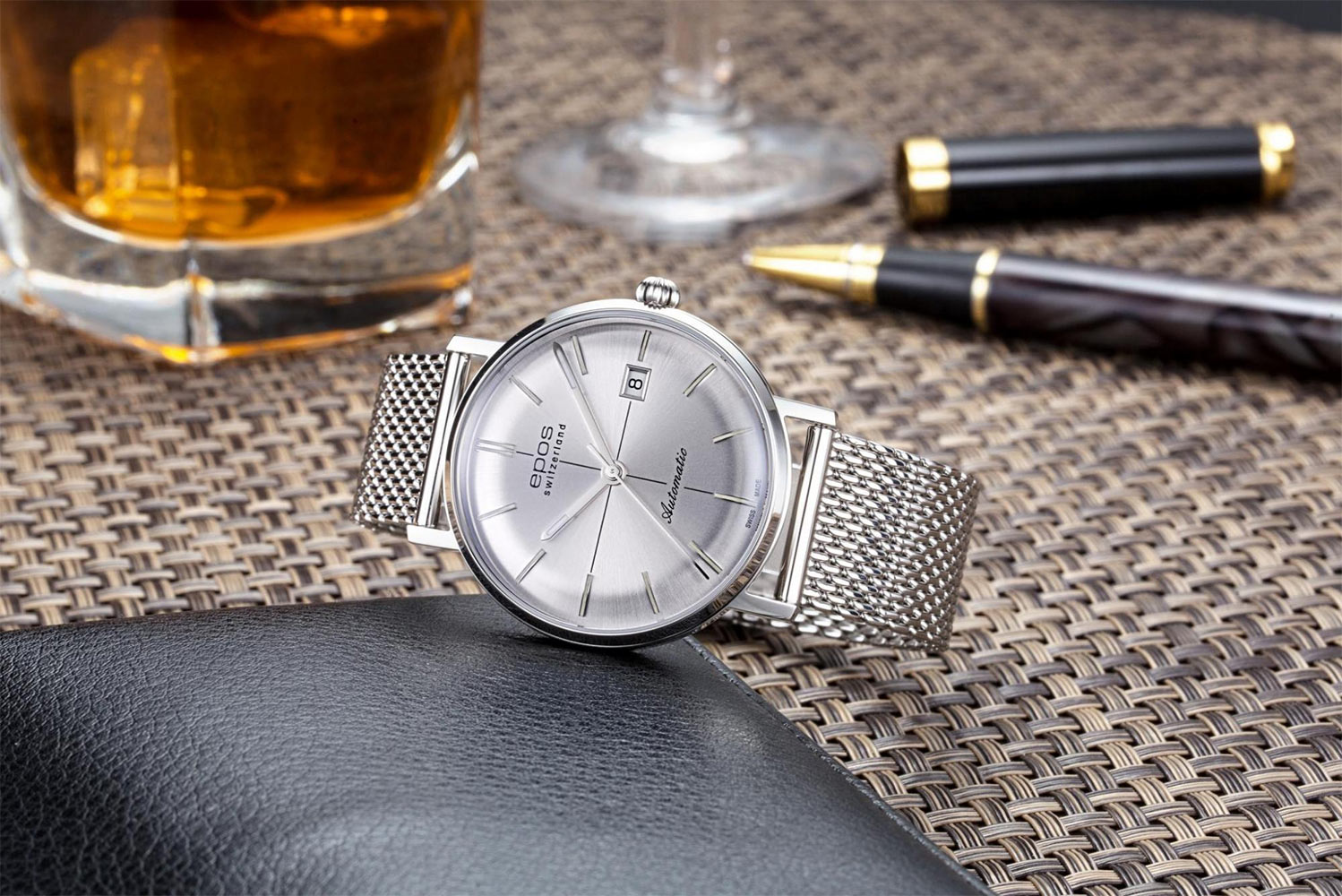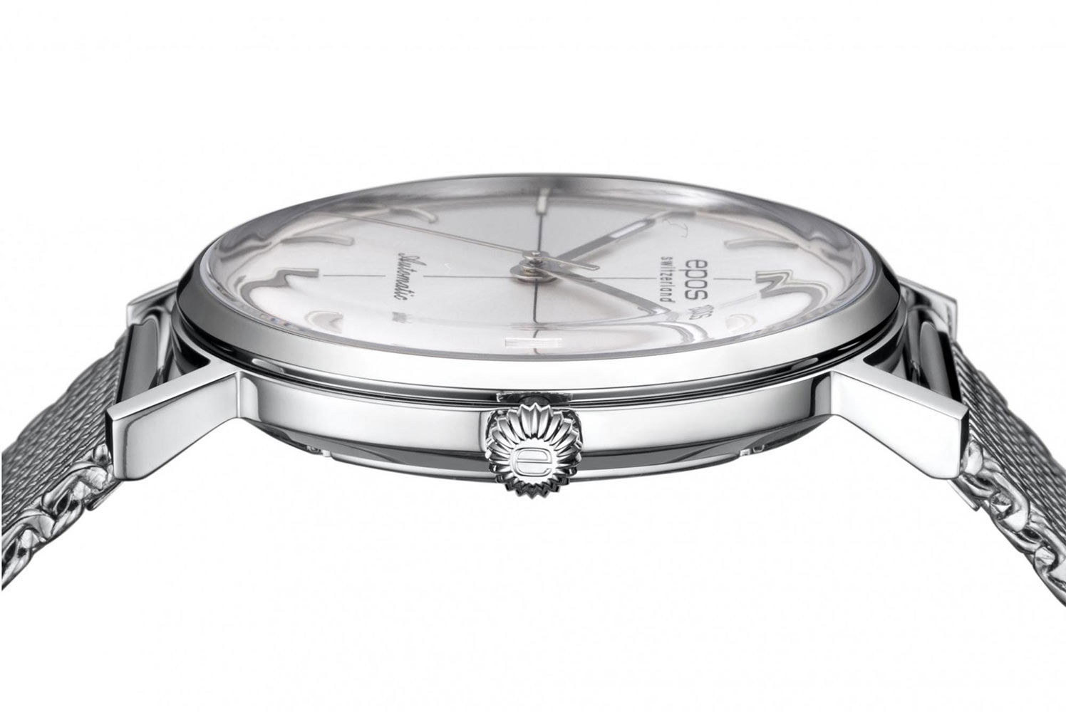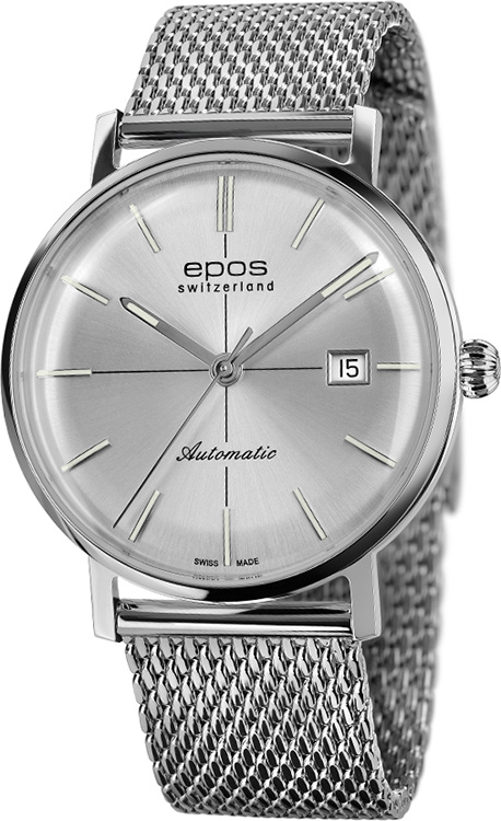 Epos Originale Retro 3437.132.20.18.30 pánské hodinky s ciferníkem v retro stylu, uzavřené v pouzdru z nerezové oceli s vypouklým safírovým sklíčkem odolným proti poškrábání. Světelné paprsky odrážející se od okraje pouzdra splývají na číselníku. Pouzdro má průměr 38,8 mm a tloušťku 9,9 mm, což dodává pocit pevnosti a neuvěřitelné pohodlí při nošení. Důmyslný a krásně zpracovaný automatický Machineek ETA 2824 je viditelný přes zadní sklo pouzdra.