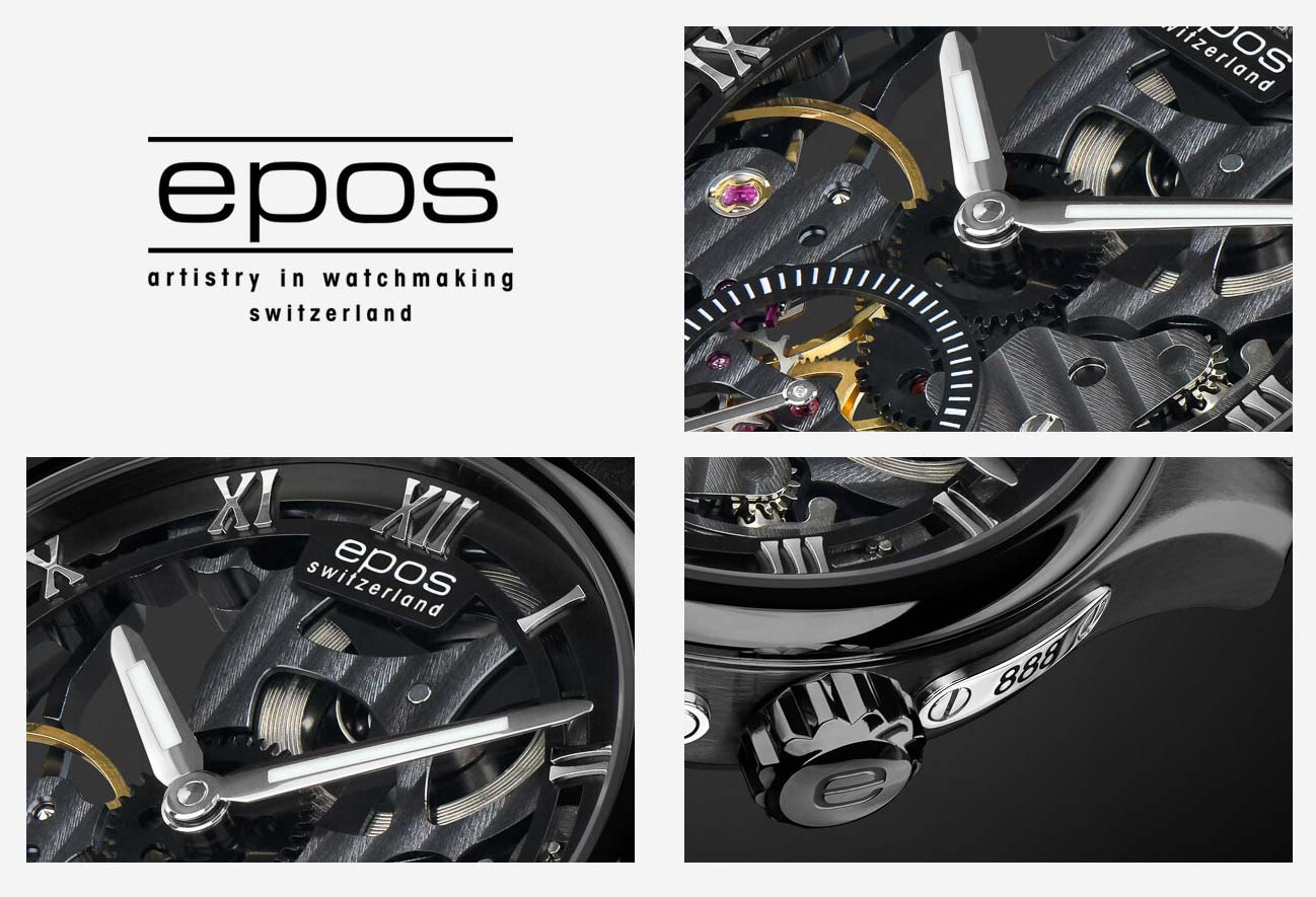 Švýcarská značka EPOS představuje limitovanou edici skeletových hodinek, celosvětově pouze 888 kusů. Hodinky jsou skutečným, ohromujícím mistrovským dílem, konstrukce skeletu je plně viditelná a ukazuje skutečné švýcarské řemeslo. Skeletový Machineek Unitas 6498 , umístěný v nenáročném, ale elegantním pouzdře, s nádhernou dekorací Côtes de Genève . Plně skeletovaný ruční tah je pokryt černým povlakem. To, co odlišuje srdce hodinek, je jejich krásná, poutavá povrchová úprava.