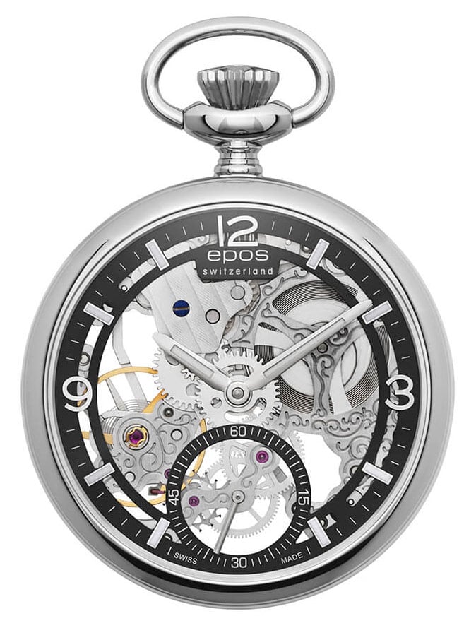 Elegantní a prestižní kapesní hodinky pro gentlemana, který hledá hodinky s nadčasovými hodnotami. Nový Epos 2078SK je nabídkou nejen pro znalce hodinářského umění, ale také pro muže, kteří oceňují moderní a neobvyklá řešení. Černá barva ciferníku dodává úžasný charakter a skeletový mechanismus ručně zdobili hodináři Epos.