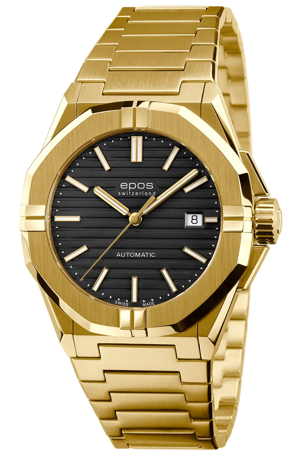 Epos Sport 3506.132.22.15.32 je pánské automatické hodinky v plném zlacení PVD, které spojují sportovní konstrukci s výraznou prémiovou estetikou. V této verzi vytváří klasický černý ciferník kontrast s hlubokým odstínem zlata a podtrhuje charakter modelu.