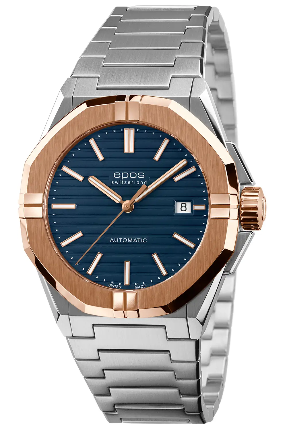 Epos Sport 3506.132.34.16.30 je volbou pro muže, který hledá hodinky s moderním charakterem a důrazem na detaily typickým pro švýcarskou manufakturu. Ocelové pouzdro o průměru 41 mm je doplněno kroužkem v barvě růžového zlata, čímž vzniká výrazná kombinace oceňovaná v současném designu. Modrý ciferník s charakteristickou horizontální strukturou podtrhuje dynamický styl kolekce Sport.