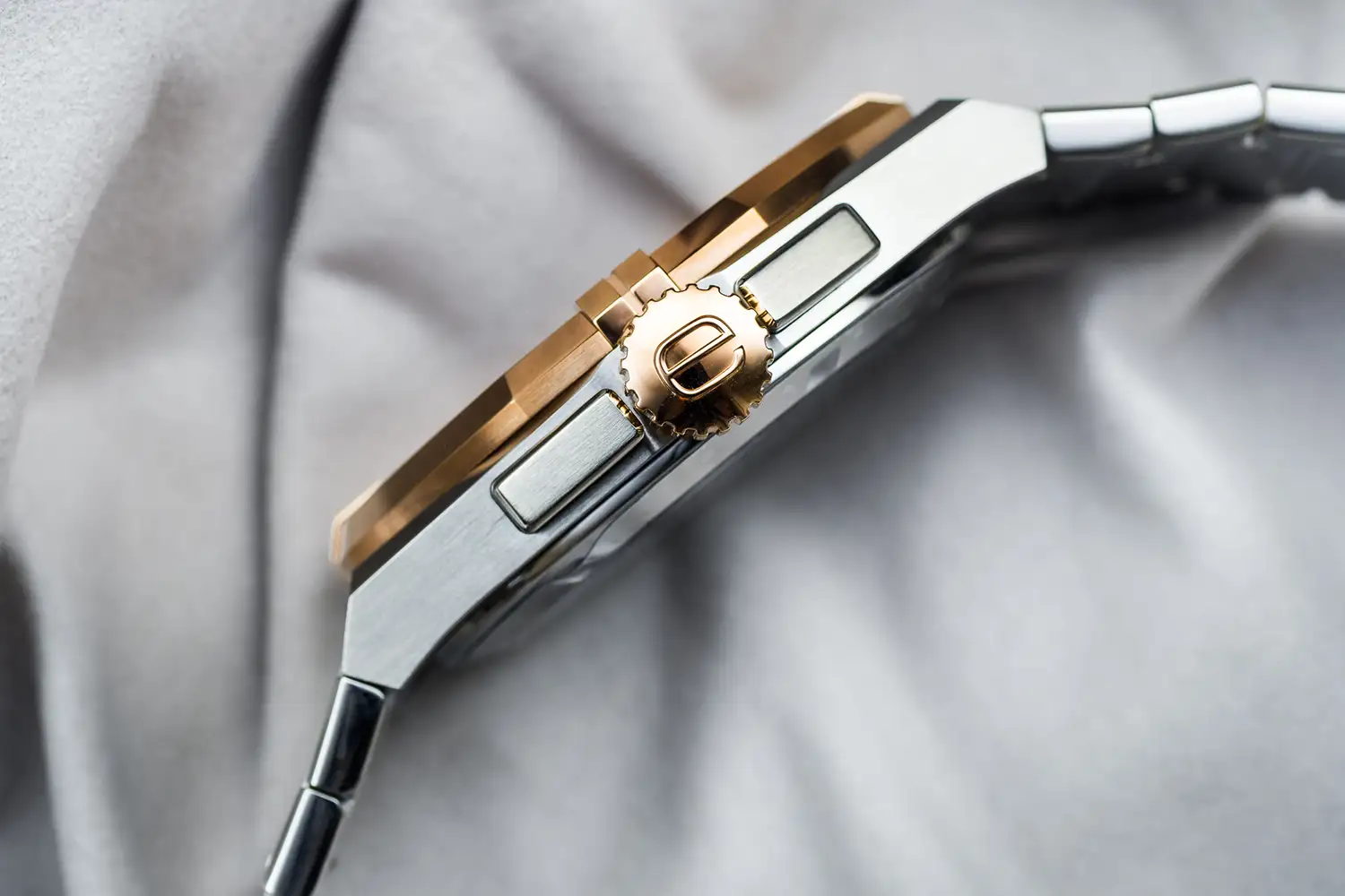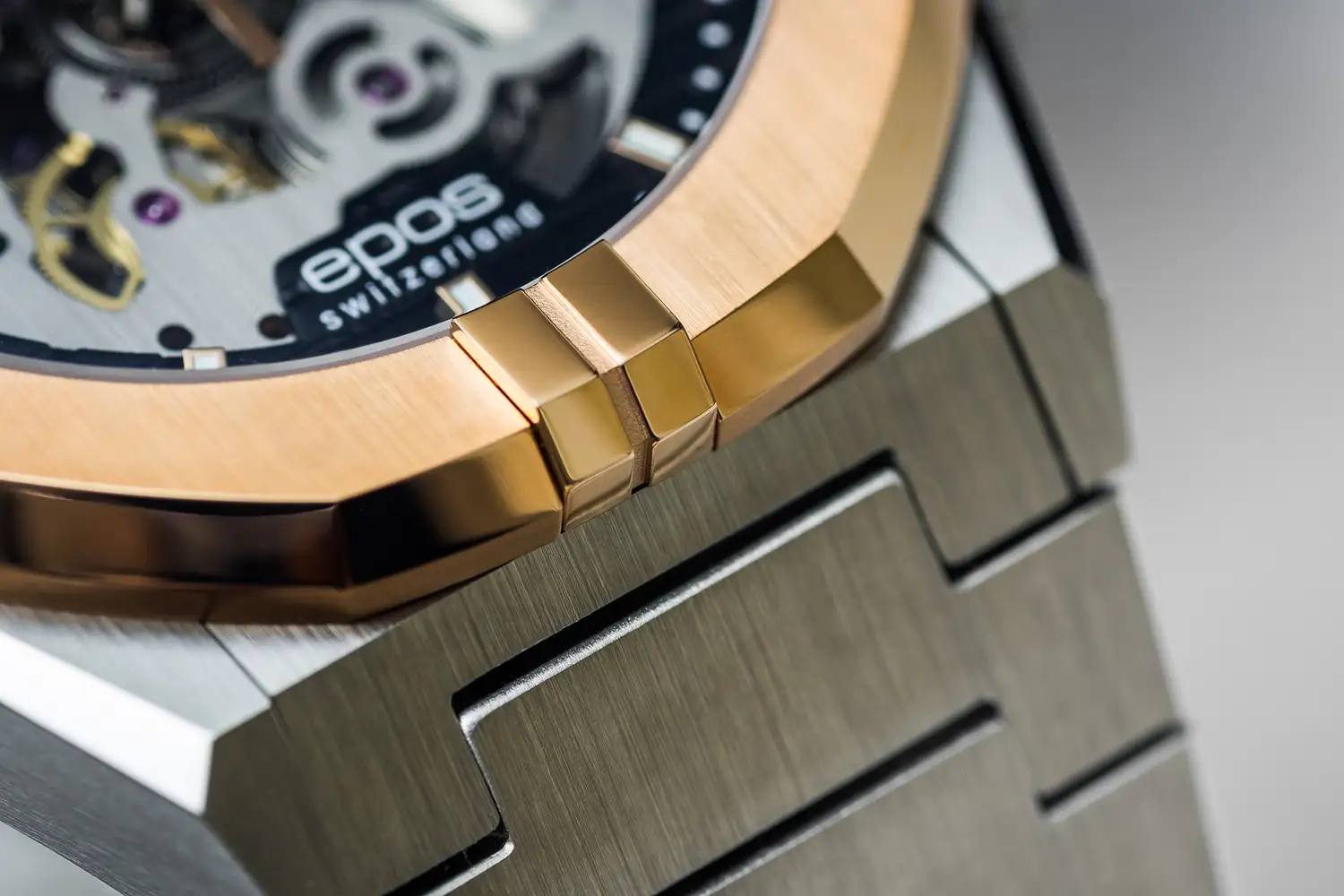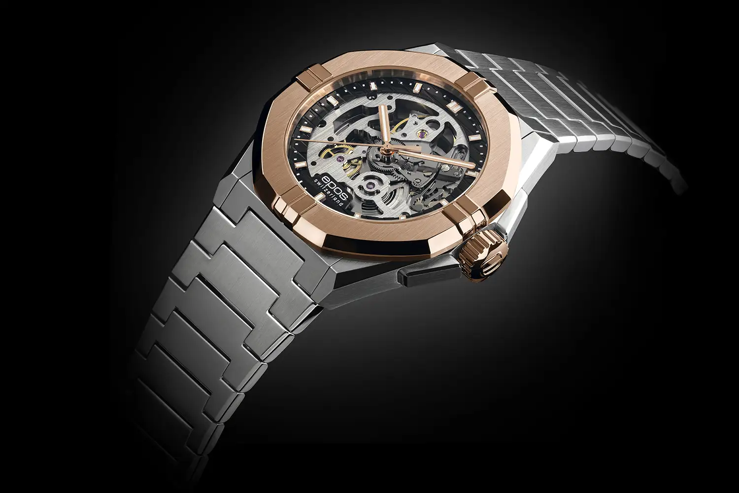 Dvoubarevné ocelové pouzdro a kroužek v odstínu růžového zlata PVD dodávají konstrukci elegantní, moderní charakter. Ocelový náramek s plnými články zajišťuje trvanlivost a pohodlí při nošení a prosklené víko umožňuje obdivovat chod mechanismu také zespodu. Sportovní charakter modelu doplňuje vodotěsnost 10 ATM, díky které jsou hodinky připraveny na každodenní aktivity.