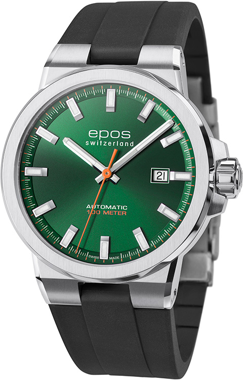 Švýcarská značka EPOS představuje dynamické sportovní hodinky Epos Sportive 3442.132.20.13.55 . Poháněno pečlivě zdobeným, známým Machinekem ETA 2824 . Vysoce kvalitní matné pouzdro s leštěnými hranami se hladce integruje s černým pryžovým vodotěsným páskem. Sportovní charakter modelu Sportive podtrhuje voděodolnost do 10 bar / 100 m, typicky pánské velikosti o průměru 42 mm a tloušťce 10,40 mm. Celý je vyroben z nerezové oceli, odolné vůči korozi. Dvouvrstvý ciferník s datumovkou je dostupný v úžasné zelené barvě. Povrchová úprava sunburst je doplněna víceúhlovými leštěnými, ručně aplikovanými indexy. Epos Sportive jsou perfektním doplňkem pro nadšence do mechanických hodinek, kteří hledají luxusní sportovní hodinky Swiss Made, které v den důležitých obchodních jednání nemusí zůstávat v šuplíku.