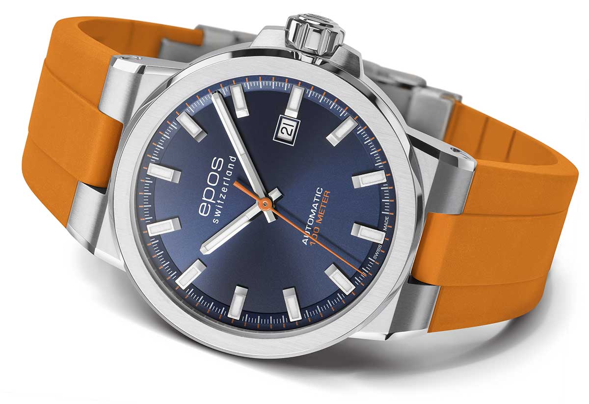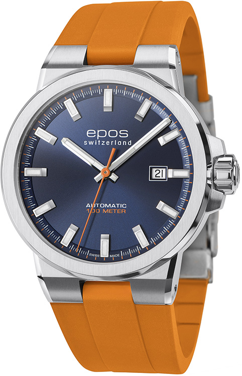 Švýcarská značka EPOS představuje dynamické sportovní hodinky Epos Sportive 3442.132.20.16.52 . Poháněno pečlivě zdobeným, známým Machinekem ETA 2824 . Vysoce kvalitní matné pouzdro s leštěnými hranami se hladce integruje s voděodolným oranžovým pryžovým páskem. Sportovní charakter modelu Sportive podtrhuje voděodolnost do 10 bar / 100 m, typicky pánské velikosti o průměru 42 mm a tloušťce 10,40 mm. Celý je vyroben z nerezové oceli, odolné vůči korozi. Dvouvrstvý ciferník s datumovkou je dostupný v úžasné modré barvě. Povrchová úprava sunburst je doplněna víceúhlovými leštěnými, ručně aplikovanými indexy. Epos Sportive jsou perfektním doplňkem pro nadšence do mechanických hodinek, kteří hledají luxusní sportovní hodinky Swiss Made, které v den důležitých obchodních jednání nemusí zůstávat v šuplíku.