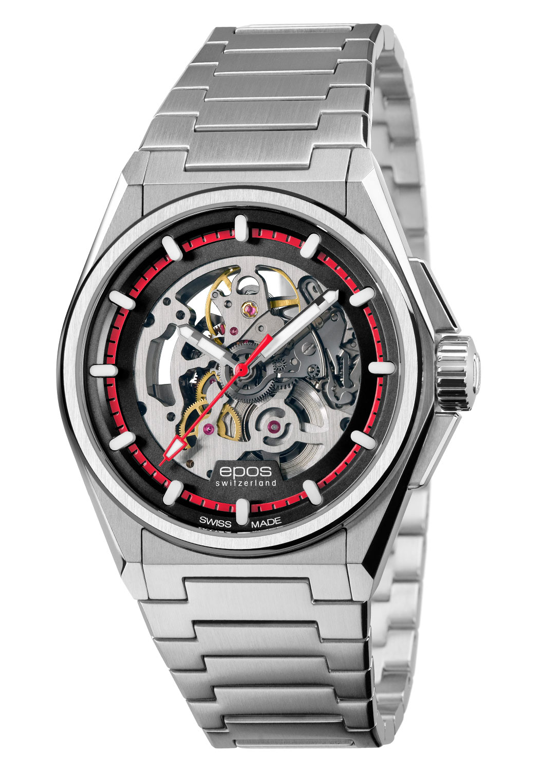 Viditelný mechanismus hodinek je kalibr Sellita SW200 ve skeletonové verzi, představující špičku švýcarského inženýrství. Tento precizně navržený strojek zaručuje bezkonkurenční přesnost a spolehlivost, díky čemuž budou hodinky měřit čas s dokonalou přesností po generace. Antracitové zpracování skeletonového mechanismu dodává hodinkám sportovní i elegantní charakter, který vybízí k obdivu mistrovského hodinářského řemesla z každého úhlu. Model „Epos 3505 SK“ se jistě stane cenným a vysoce žádaným přírůstkem do sbírek milovníků luxusních hodinek.