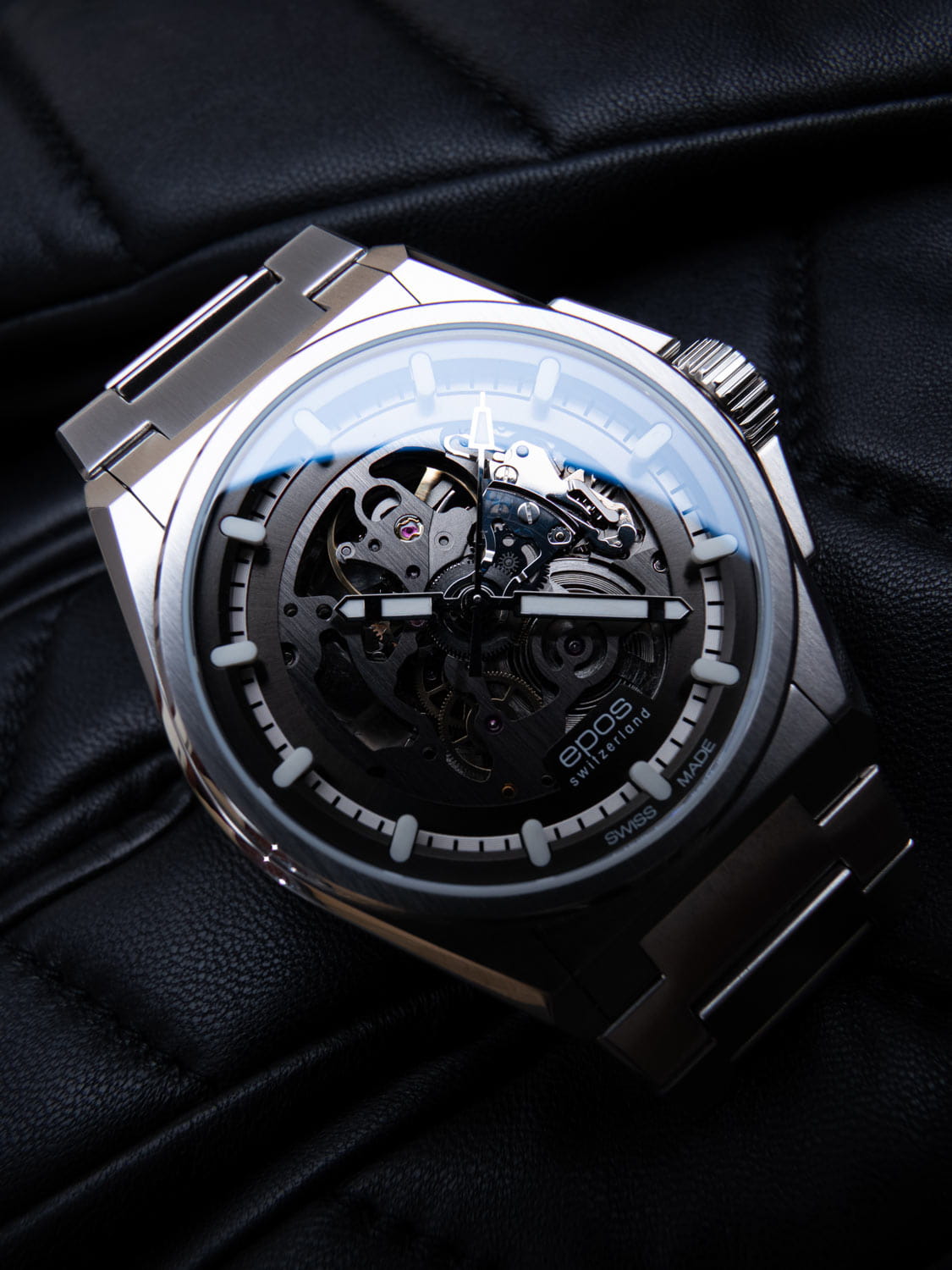 Odkrytý mechanismus je kalibr Sellita SW200 ve skeletové verzi, představující kvintesenci švýcarské inženýrské dokonalosti. Tento precizně navržený strojek zaručuje bezkonkurenční přesnost a spolehlivost, díky čemuž automatické hodinky EPOS 3505.139.20.14.30 budou měřit čas přesně po celé generace. Antracitová úprava skeletového mechanismu dodává časoměru sportovní, ale zároveň elegantní charakter a vybízí k obdivování mistrovství hodinářského řemesla z každého úhlu pohledu. Model „Epos 3505 SK“ se bezpochyby stane cenným a vyhledávaným kouskem ve sbírkách milovníků luxusních hodinek.