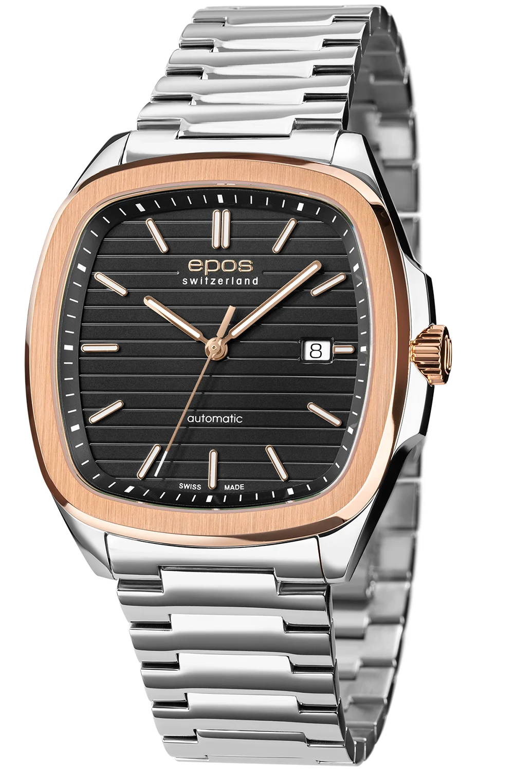 Pánské hodinky Epos Timeless 3511.152.34.15.30 jsou elegantní model se čtvercovým pouzdrem 40 mm, vytvořený pro muže, kteří si cení švýcarské preciznosti a vytříbeného stylu. Jejich automatický strojek zajišťuje spolehlivost a dvoubarevná konstrukce pouzdra dodává moderní lehkost.