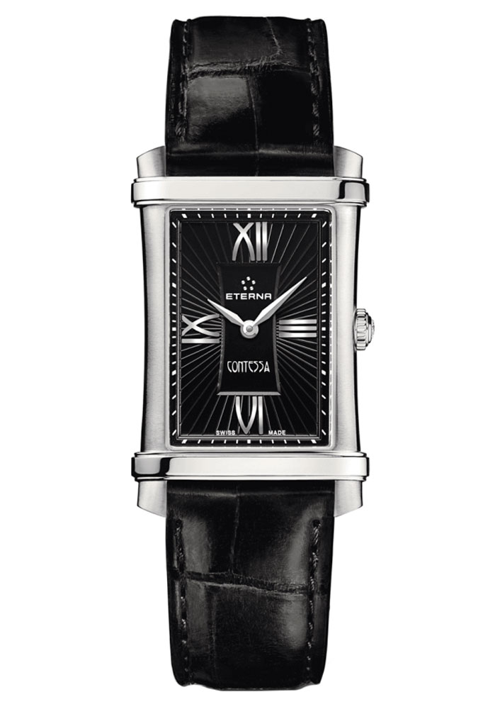 Eterna ve 30. letech potěšila svět unikátními dámskými hodinkami ve stylu Art Deco vybavenými nejmenším dámským Machinekem – tzv. „bagetou.“ Dnes Eterna opakuje svůj úspěch z 30. let s extrémně ženskou řadou Contessa. Protože nic nepodtrhne krásu každé ženy tak jako diamant, je každý kousek z řady Contessa opatřen korunkou zakončenou těmito drahými kameny (Top Wesselton, VVS, 0,06 karátů). Rozměry obálky 25,75 × 40 mm.