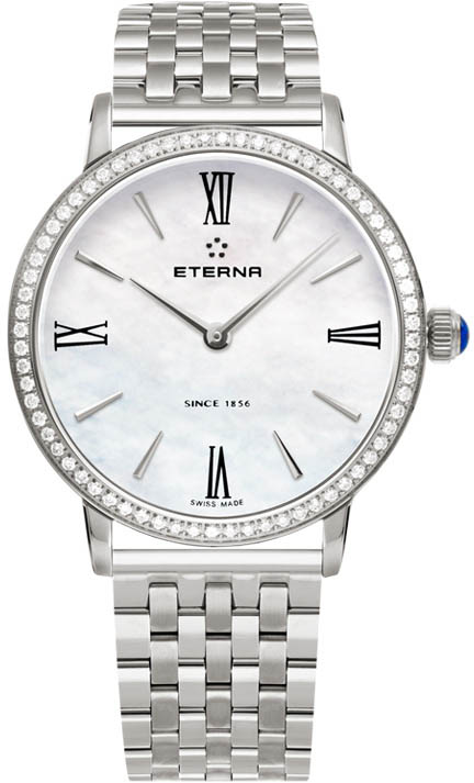 Eterna Eternity, mistrovství řemesla, snaha o dokonalost. Již více než 160 let pracují hodináři Eterna s nezaměnitelným nasazením a velkou péčí na vývoji a výrobě svých mistrovských děl. Společnost Eterna, vkládající své dlouhé tradice do služeb technického i estetického pokroku, vytvořila kolekci Eternity. Každý hodinář to ocení. Eterna je dokonalost, která obstojí ve zkoušce času. Dámské hodinky s quartz Machinekem, napájené baterií ETA 956.412, v elegantní podobě, které skvěle doladí večerní outfit.