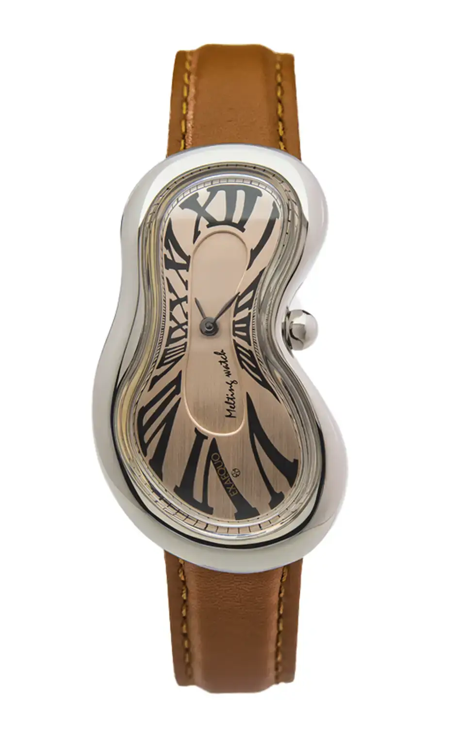 Limitované tající hodinky Exaequo Melting Watch Rose Gold One Of 101 Limited Edition EX0001.0010 jsou výjimečným dílem užitého umění, ve kterém se umělecká vize snoubí s precizností švýcarského mechanismu. Avantgardní, nepravidelné pouzdro z chirurgické ušlechtilé oceli 316L ve stříbrné barvě symbolizuje myšlenku plynoucího času a vzdává hold estetice surrealismu. Limitovaná edice na 101 kusů z něj činí sběratelský objekt a manifest individualismu. Výjimečný design a odvaha překračovat klasické formy přitahují pozornost a vyvolávají emoce, čímž hodinkám dodávají nadčasový charakter.