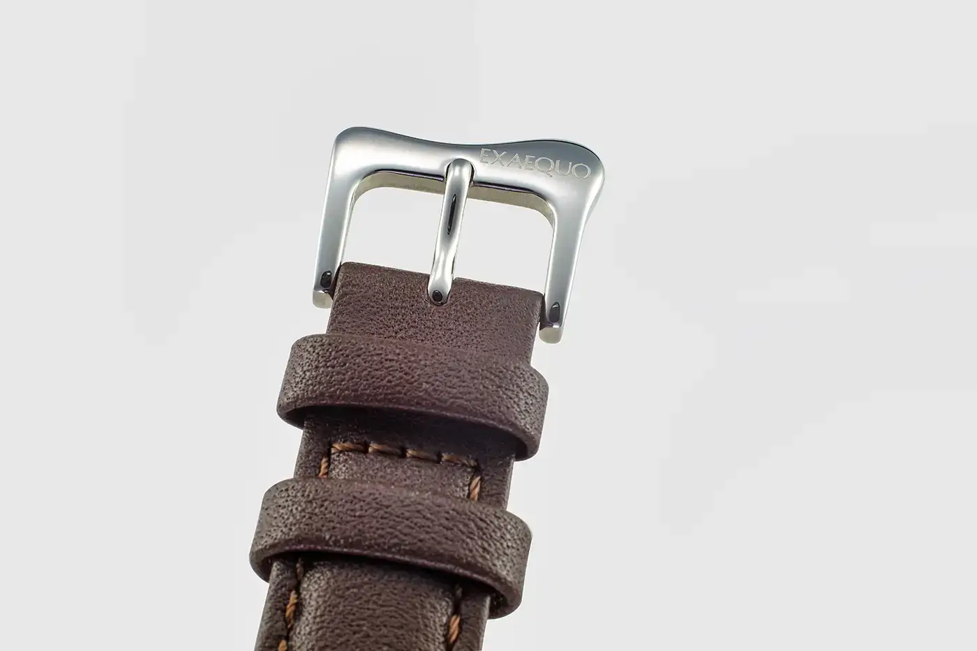 Dokončení surrealistických hodinek typu Melted Watch značky Exaequo je kožený pásek s hladkou strukturou, který dokonale podtrhuje eleganci designu. Vyrobený z vysoce kvalitní kůže, pásek má tónované prošívání a pohodlné sponové zapínání. Model Melting Watch SS 316L White HS Code 9102.11.65 není jen časoměr, ale i pocta ideji tekutého, subjektivního času, který může být zkreslený a manipulovaný lidskou percepcí. Design odráží efemérní povahu života a křehkost existence, zároveň zkoumá surrealistický svět snů a nevědomí, který zpochybňuje racionální zákony a společenské konvence. Hodinky Exaequo Melting Watch Silver White s grácií spojují styl, kulturu a hlubokou reflexi o podstatě času a reality.