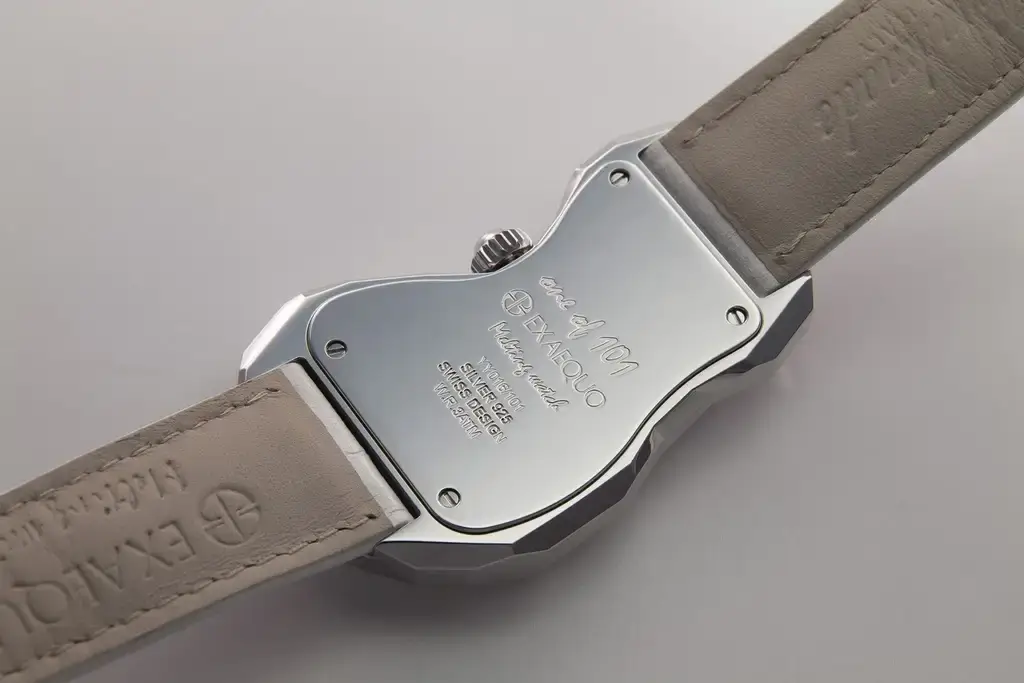 Uvnitř těchto sběratelských hodinek typu melted watch ze stříbra se nachází švýcarský quartzový strojek Ronda 751-A1G3, ceněný pro svou přesnost a spolehlivost. Stříbrná korunka typu snap crown a dýnko připevněné čtyřmi šrouby zajišťují voděodolnost na úrovni přibližně 3 ATM, což činí model Exaequo Polyhedron 925 odolným vůči každodennímu postříkání. Gravírování „One of 101“ umístěné na zadní straně oslavuje 101. výročí prvního surrealistického manifestu a zároveň symbolizuje limitaci na 101 kusů. Každý kus je výsledkem minimálně dvou dnů ručního zpracování pouzdra, bez započítání montáže a dokončovacích prací — jde o výjimečné řemeslo v nejčistší podobě, které spojuje technickou dokonalost s uměleckou extravagancí.