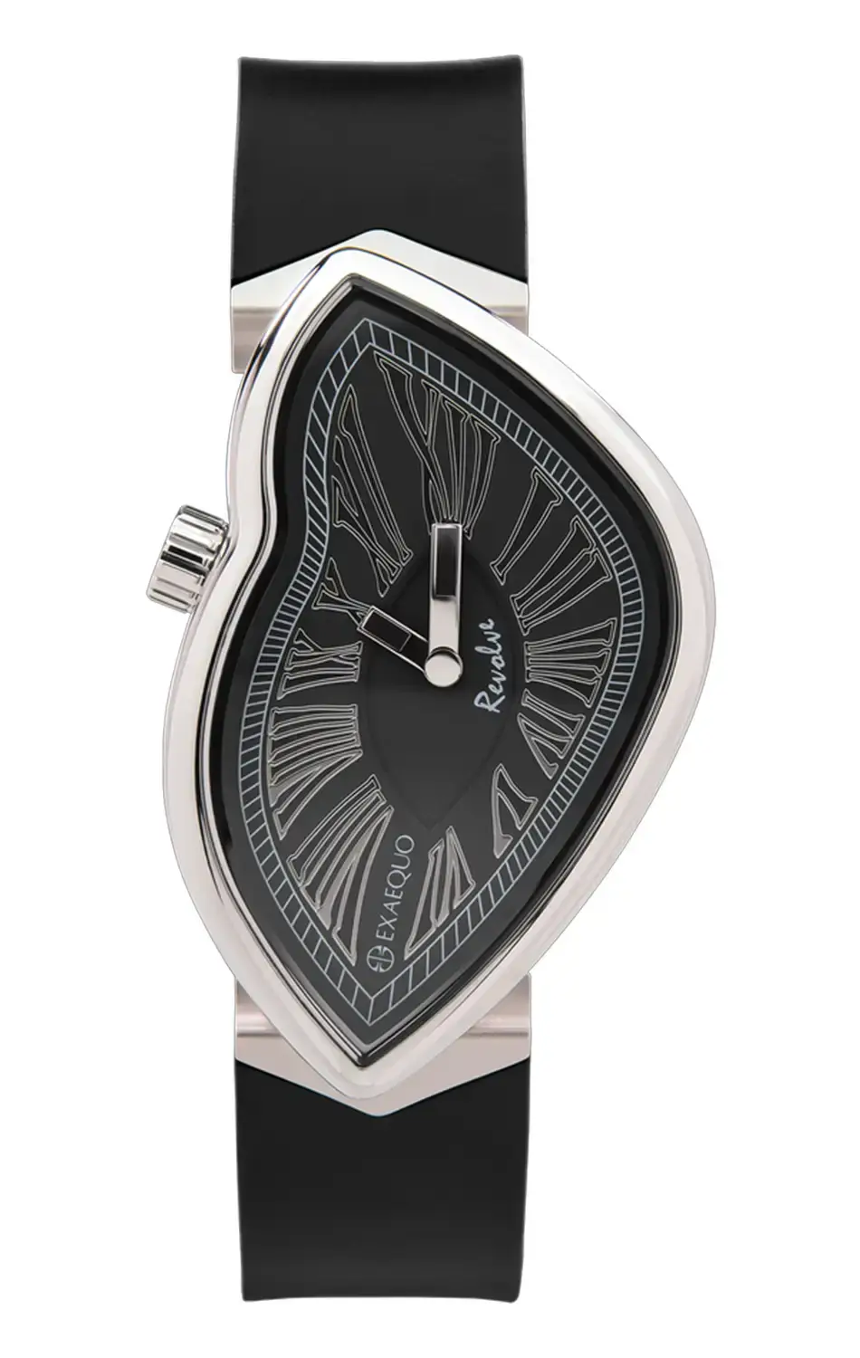 Surrealistické hodinky s asymetrickým pouzdrem Exaequo Revolve Melting Watch Black EX0031.0001 jsou manifestem uměleckého nonkonformismu – propojením odvážného designu, inspirace surrealismem a řemeslné preciznosti.