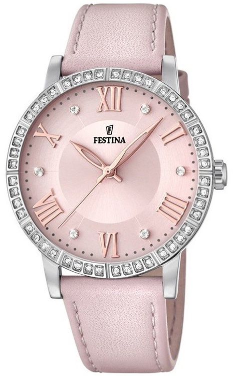 Festina Boyfriend F20412/2 , elegantní dámské hodinky v módním stylu. Čitelný číselník s římskými indexy zdobenými krystaly stejně jako pouzdro rozzáří každý den. Pohodlný růžový kožený řemínek a pouzdro z nerezové oceli. Perfektní hodinky pro ženy, které ocení eleganci.