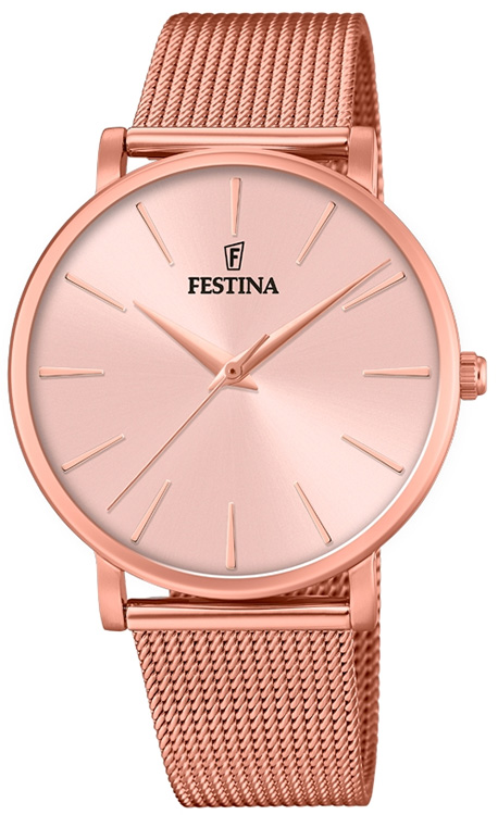 Festina Boyfriend F20477/1 , elegantní dámské hodinky v módním stylu. Čirý jednoduchý ciferník zlaté barvy uvnitř pozlaceného jemného pouzdra o průměru 38 mm. Díky síťovanému náramku, který se pohodlně nosí, ruka dýchá a nepotí se, ideální řešení pro horké dny. Hodinky pro ženy, které ocení eleganci.