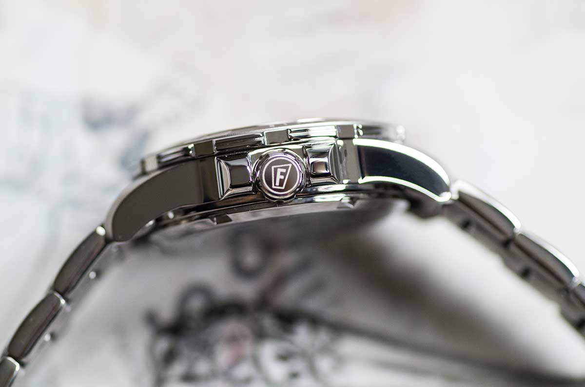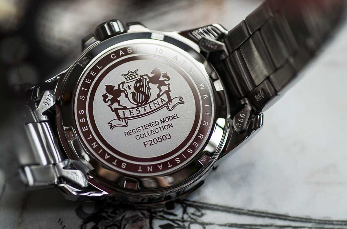 Pro uživatele, kteří navíc vedou sportovní životní styl, se model F20503/2 vyznačuje vysokou třídou voděodolnosti až do 100 metrů. To znamená, že budou moci znát čas při ranní sprše, večerní koupeli nebo při pobytu na koupališti. Funkce časovače, kromě indikace hodin, minut a sekund analogovým způsobem, zahrnují datumové okénko - efektivně pokryté lupou, které dobře funguje pod vodou. 35mm pouzdro z nerezové oceli je vysoce odolné proti poškrábání a korozi, zatímco luneta se otáčí jednosměrně a má minutovou stupnici. Tato stupnice nejenže dodává hodinkám sportovní, téměř diverský nádech, ale především funguje pro ještě větší funkčnost čtení – jak na souši, tak pod hladinou. Za celý chod příMachinee je zodpovědný velmi přesný quartzový Machineek napájený periodicky vyměnitelnou baterií.