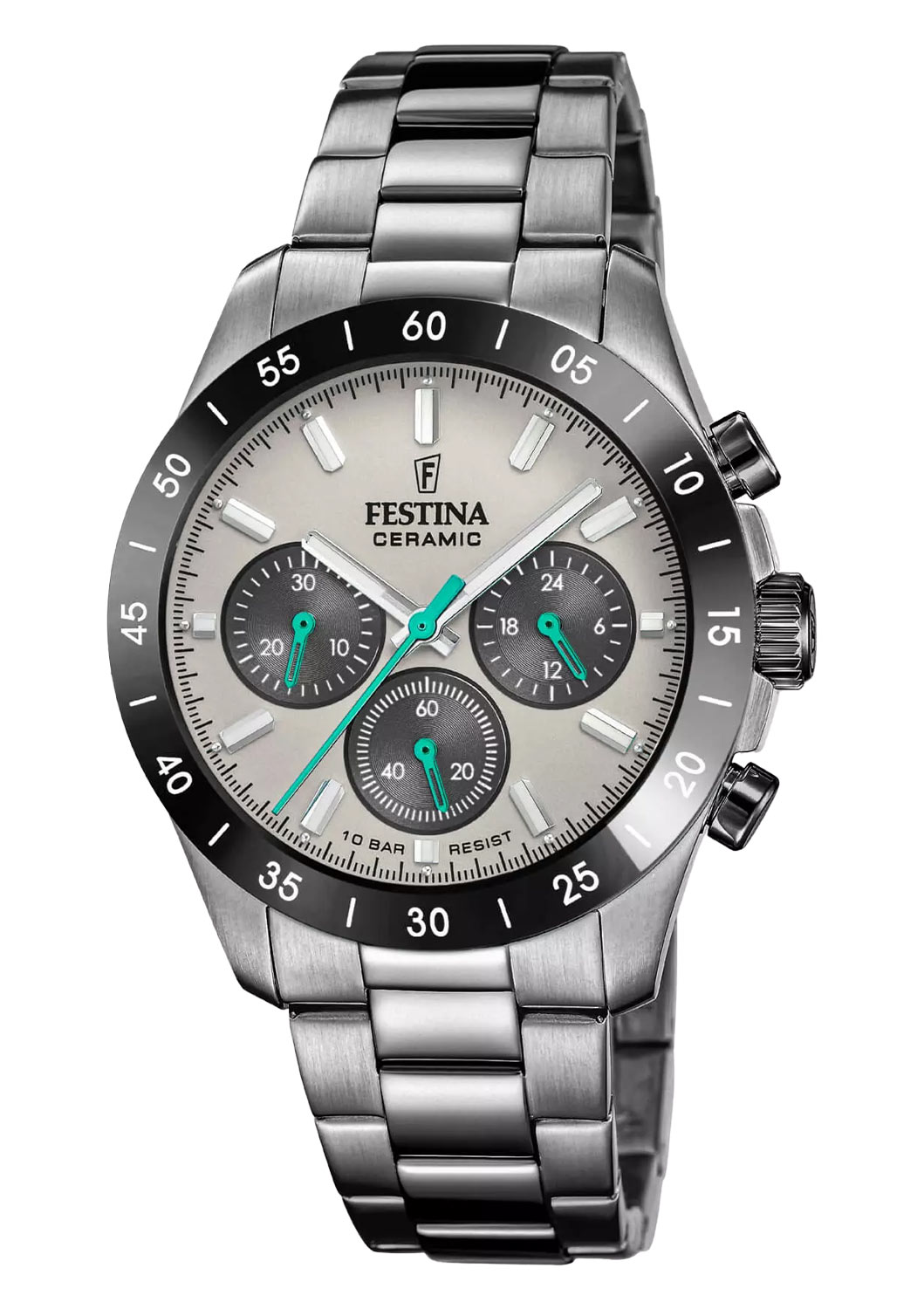 Šedý ciferník hodinek Festina byl obohacen o praktické chronografické čítače, které přidávají na funkčnosti a stylu. Model Festina Ceramic F20703-1 je univerzální časoměřič, ideální pro každou příležitost. Chronograf umožňuje přesné měření času, což je zvláště užitečné při fyzických aktivitách. Na třetí hodině se nachází 12/24h ukazatel, který informuje o aktuálním denním čase. Tyto hodinky mají vodotěsnost do 100 metrů, což umožňuje bezpečné používání při vodních sportech, jako je plavání. Pánské hodinky Festina na náramku jsou skvělým doplňkem šatníku každého klasického muže.