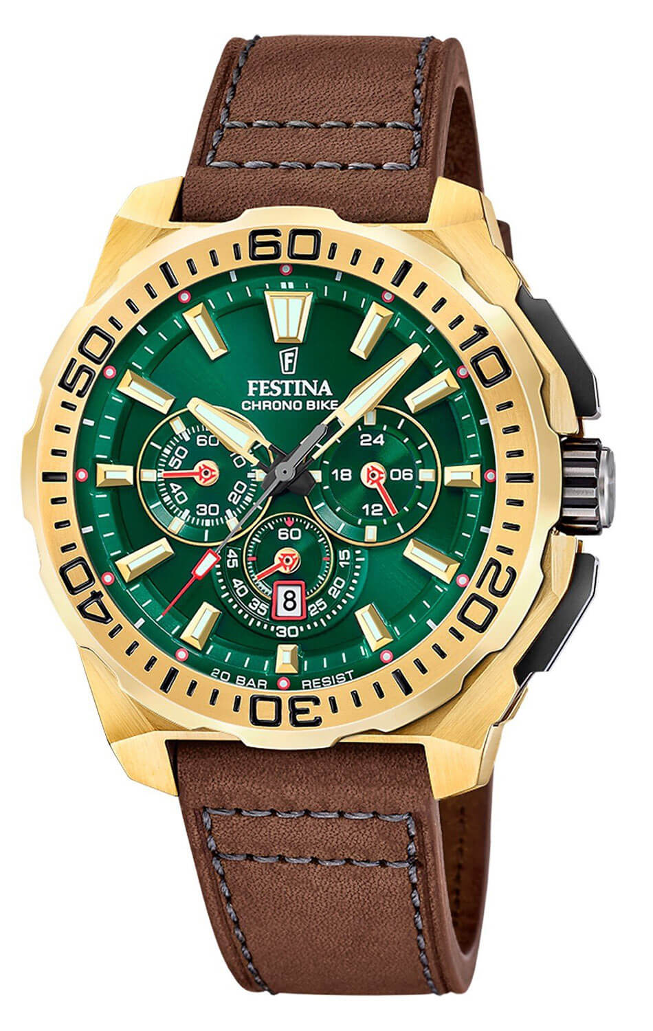 Pozlacené pánské hodinky Festina Chrono Bike F20728/2 jsou odpovědí pro ty, kteří neoddělují adrenalin od stylu – protože chtějí obojí v jedné dynamické podobě. Model z kolekce Chrono Bike dokazuje, že sportovní linie nepotřebuje kompromisy ani zbytečné prohlášení. V tomto designu je patrný závodní gen a moderní sebevědomí – jsou to hodinky, které fungují, když je třeba, a vypadají tak, že je nelze přehlédnout.