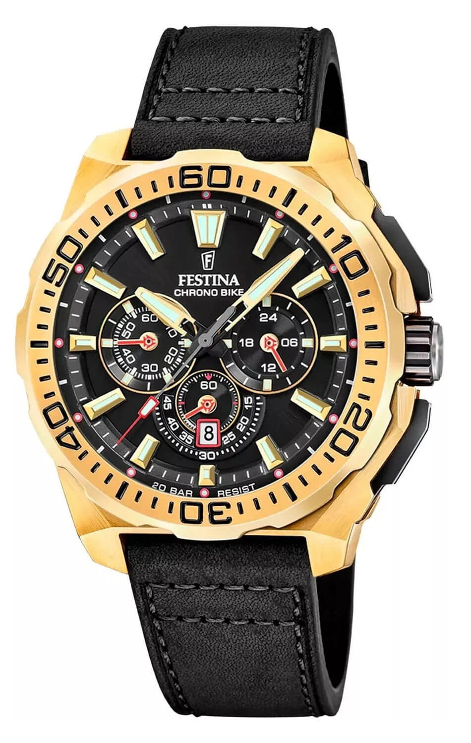 Pozlacené pánské hodinky Festina Chrono Bike F20728/3 jsou odpovědí pro ty, kteří neoddělují adrenalin od stylu – protože chtějí obojí v jedné dynamické podobě. Model z kolekce Chrono Bike dokazuje, že sportovní linie nepotřebuje kompromisy ani zbytečné prohlášení. V tomto designu je patrný závodní gen a moderní sebevědomí – jsou to hodinky, které fungují, když je třeba, a vypadají tak, že je nelze přehlédnout.