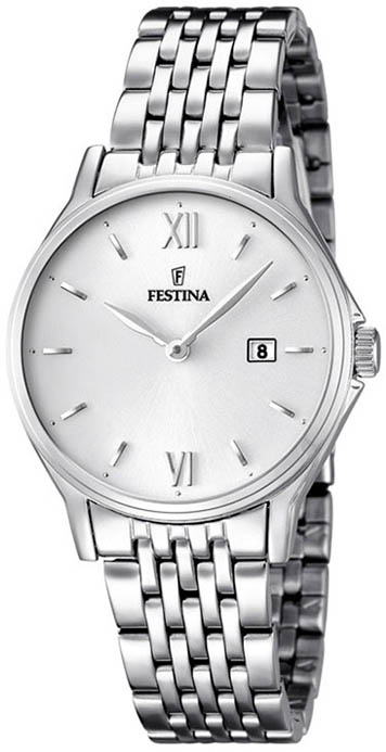 Elegantní klasické dámské hodinky Festina s tenkým pouzdrem a náramkem, který se velmi pohodlně nosí. Hodinky vyrobené z nerezové oceli.