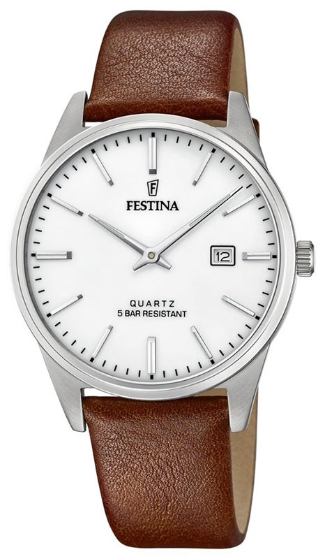 Festina jako značka známá navrhováním a vytvářením oku atraktivních hodinek s dobrou kvalitou a dostupnou cenou obohacuje svou kolekci Classic o model F20512/2 . Hodinky definuje tradiční a konzistentní hodinová stupnice - jednoduchá a funkční, vysoce správná barevná konvence bílé, stříbrné, bronzové a černé, stejně jako vyhovující odolnost a pohodlí materiálů - minerální sklo, nerez a přírodní kůže. Stavební materiál broušeného pouzdra zajistí vysokou odolnost proti korozi, poškrábání a ztrátě lesku, kožený řemínek zase skvělý komfort při nošení. Hodinky se tak budou těšit ze svého bezvadného stavu a ikonické estetiky po dlouhou dobu.