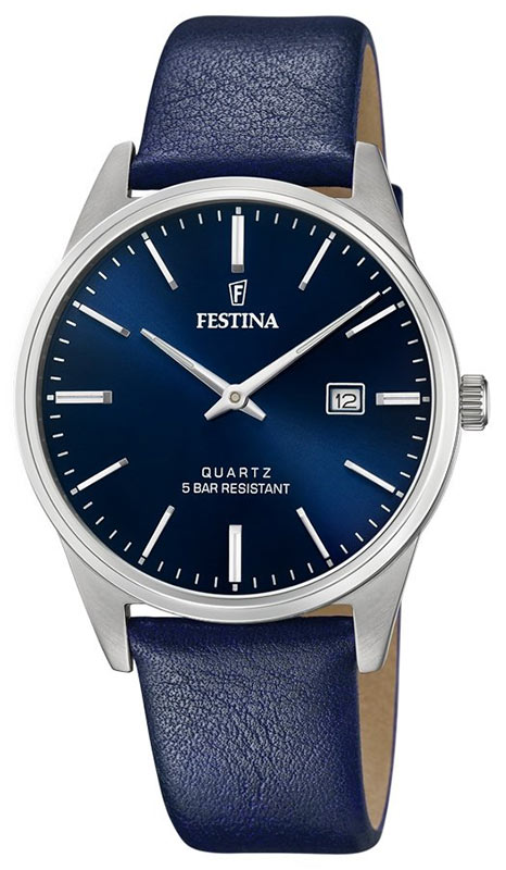 Festina jako značka známá navrhováním a vytvářením oku atraktivních hodinek s dobrou kvalitou a dostupnou cenou obohacuje svou kolekci Classic o model F20512/3 . Hodinky charakterizuje tradiční a konzistentní hodinová stupnice - jednoduchá a funkční, vysoce korektní barevná konvence stříbrné a modré i vyhovující odolnost a pohodlí materiálů - minerální sklo, nerezová ocel a přírodní kůže. Stavební materiál broušeného pouzdra zajistí vysokou odolnost proti korozi, poškrábání a ztrátě lesku, kožený řemínek zase skvělý komfort nošení. Hodinky se tak budou těšit ze svého bezvadného stavu a ikonické estetiky po dlouhou dobu.