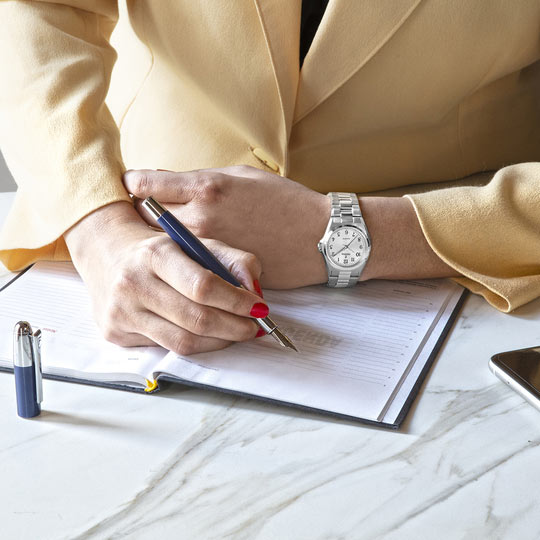 Dalším rozlišovacím prvkem je pouzdro. Jak 31mm pouzdro , tak třířadý náramek se zapínáním na dva knoflíky jsou vyrobeny z hypoalergenní nerezové oceli 316L. Použití dvou typů povrchových úprav silně ovlivňuje eleganci tohoto modelu a dodává mu extravaganci. Tlumený odstín oceli se hodí ke každému outfitu a okolnostem a je také praktický a bezchybný.