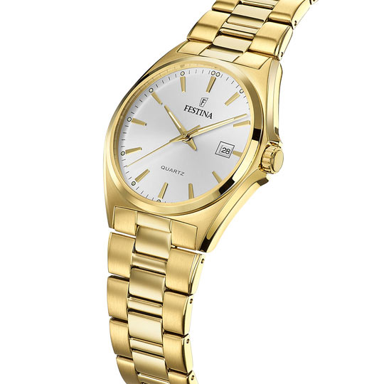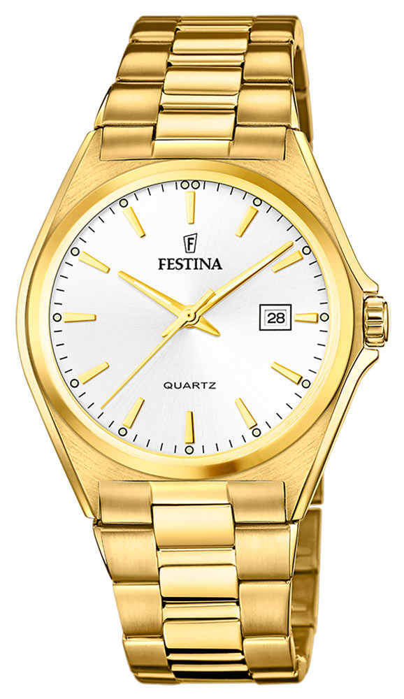 Klasické pánské hodinky na zlatém náramku Festina Classic F20555/2. Mužská ikona nadčasové třídy a stylu. Dokonalá kombinace elegance a funkčnosti, která dobře funguje minimálně ve dvou klíčových situacích. Nezbytné pro dokonalý, praktický styling nebo dekoraci - na večerní nošení, stejně jako hodinky měřící čas.
