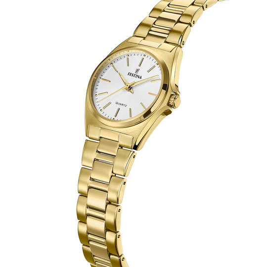Klasické dámské hodinky na zlatém náramku Festina Classic F20557/2. Dámská ikona nadčasové třídy a stylu. Dokonalá kombinace elegance a funkčnosti, která dobře funguje minimálně ve dvou klíčových situacích. Nezbytné pro dokonalý, praktický styling nebo dekoraci - na večerní nošení, stejně jako hodinky měřící čas.