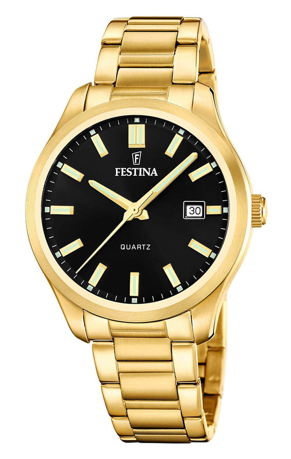 Pozlacené pánské hodinky Festina Classic F20740/3 jsou modelem ve zlaté barvě, který se nesnaží ohromit složitými funkcemi – jeho síla spočívá v jednoduchosti. Výrazné indexy na černém ciferníku a pozlacené ručičky dodávají celku lehkost a přehlednost. To je klasika, která jednoduše funguje.