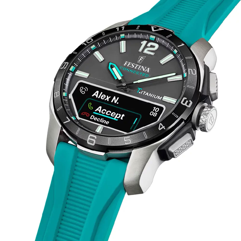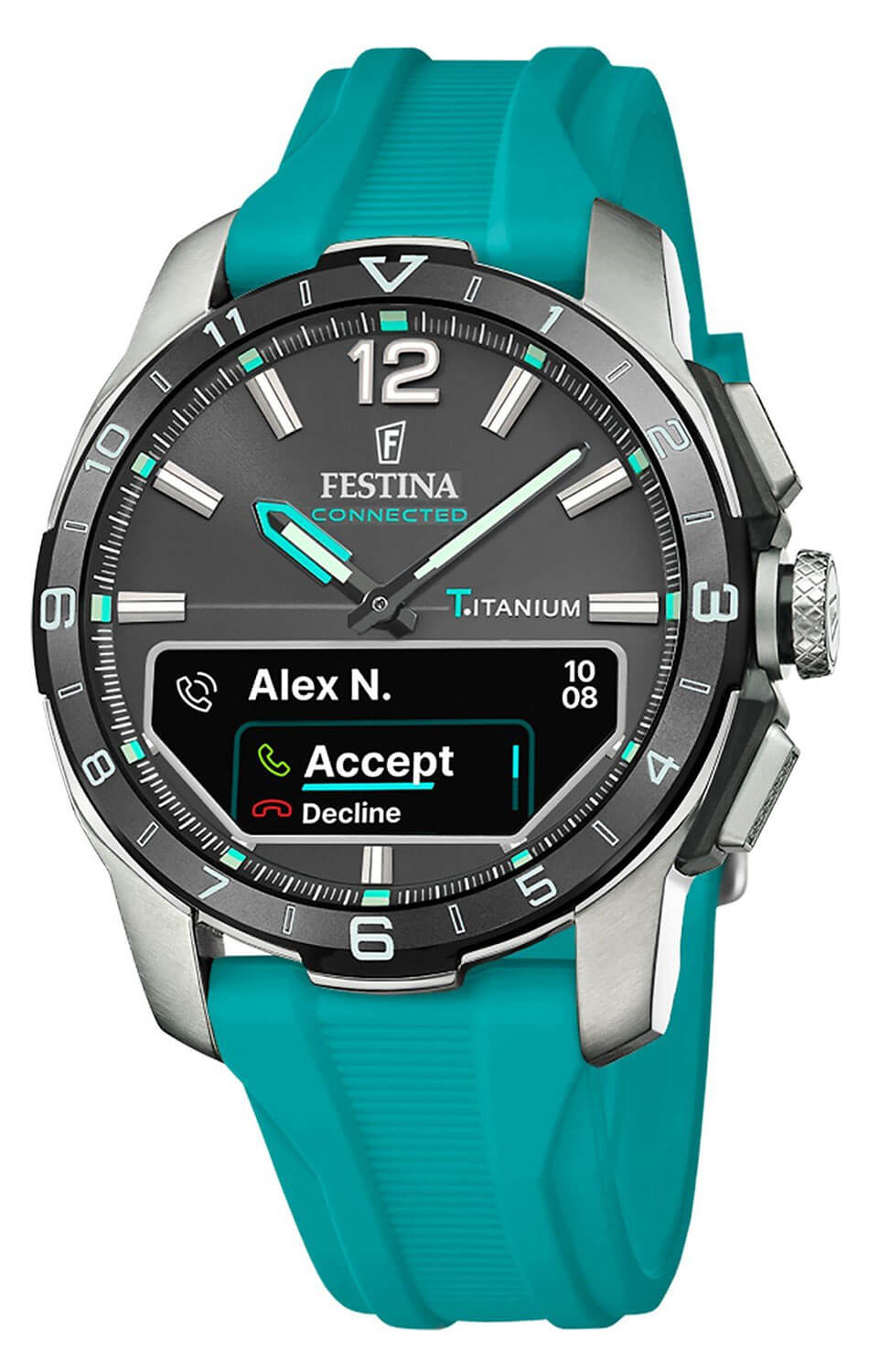 Veškeré potřebné informace jsou zobrazeny na hybridním ciferníku. Hodinky Festina ukazují aktuální čas klasickými ručičkami a indexy. Funkce smart jsou zobrazovány na dedikovaném OLED displeji. Aktuální tep, světový čas, předpověď počasí nebo zpráva od blízké osoby se přehledně zobrazí na displeji. Hodinky Festina s gumovým řemínkem byly navrženy s ohledem na snížení závislosti na smartphonu. Klasický design a jednoduchost ovládání činí tento časoměr ideálním společníkem jak na den v kanceláři, tak na večerní trénink.