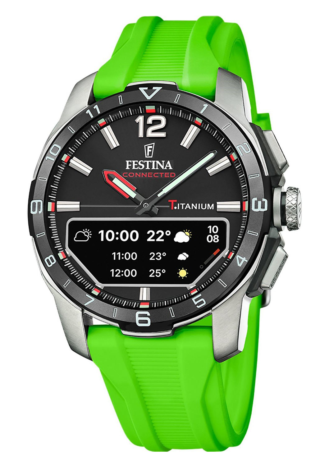 Čitelnost a intuitivní ovládání jsou dalšími přednostmi titanového modelu Festina Connected D Klasické ručky a indexy na číselníku harmonicky spolupracují s moderní OLED obrazovkou, která přehledně prezentuje data. Aktuální tepová frekvence, předpověď počasí, světový čas a zprávy jsou zobrazeny v přehledné podobě a poskytují rychlý přístup k nejdůležitějším informacím. Festina Connected D F23000-B, navržená tak, aby snížila závislost na chytrých telefonech, je pro ty, kteří oceňují eleganci i funkčnost. Ať už se chystáte na obchodní schůzku nebo školení, tyto hodinky budou vaším spolehlivým společníkem.