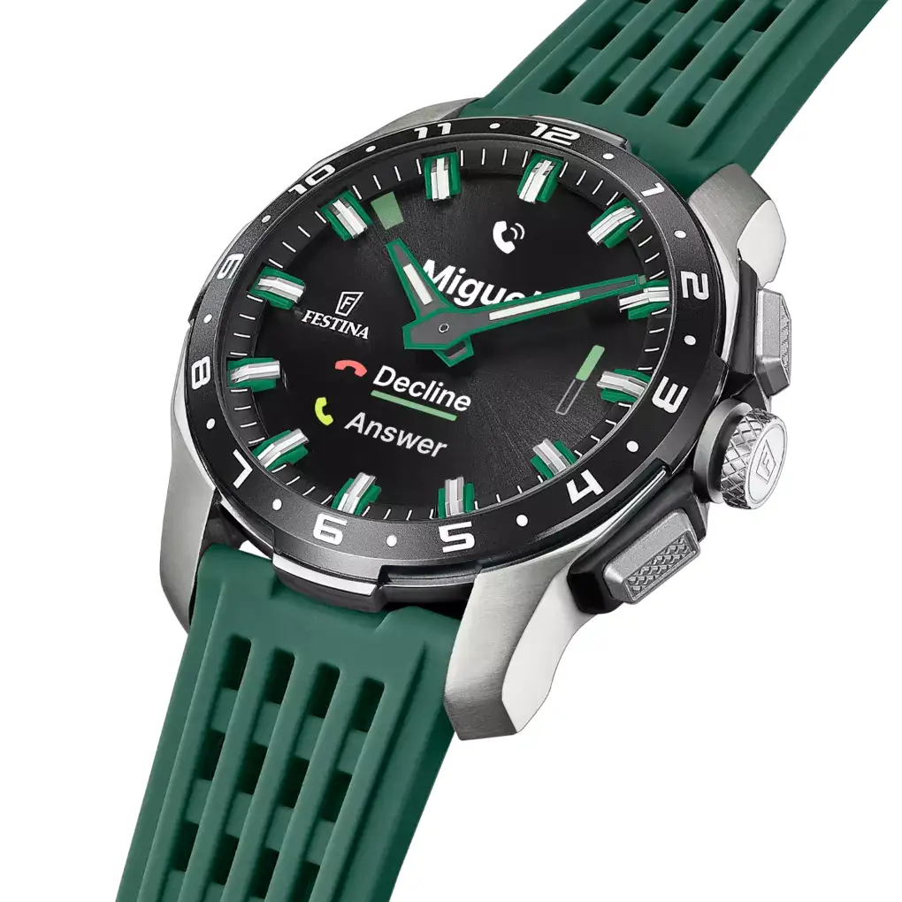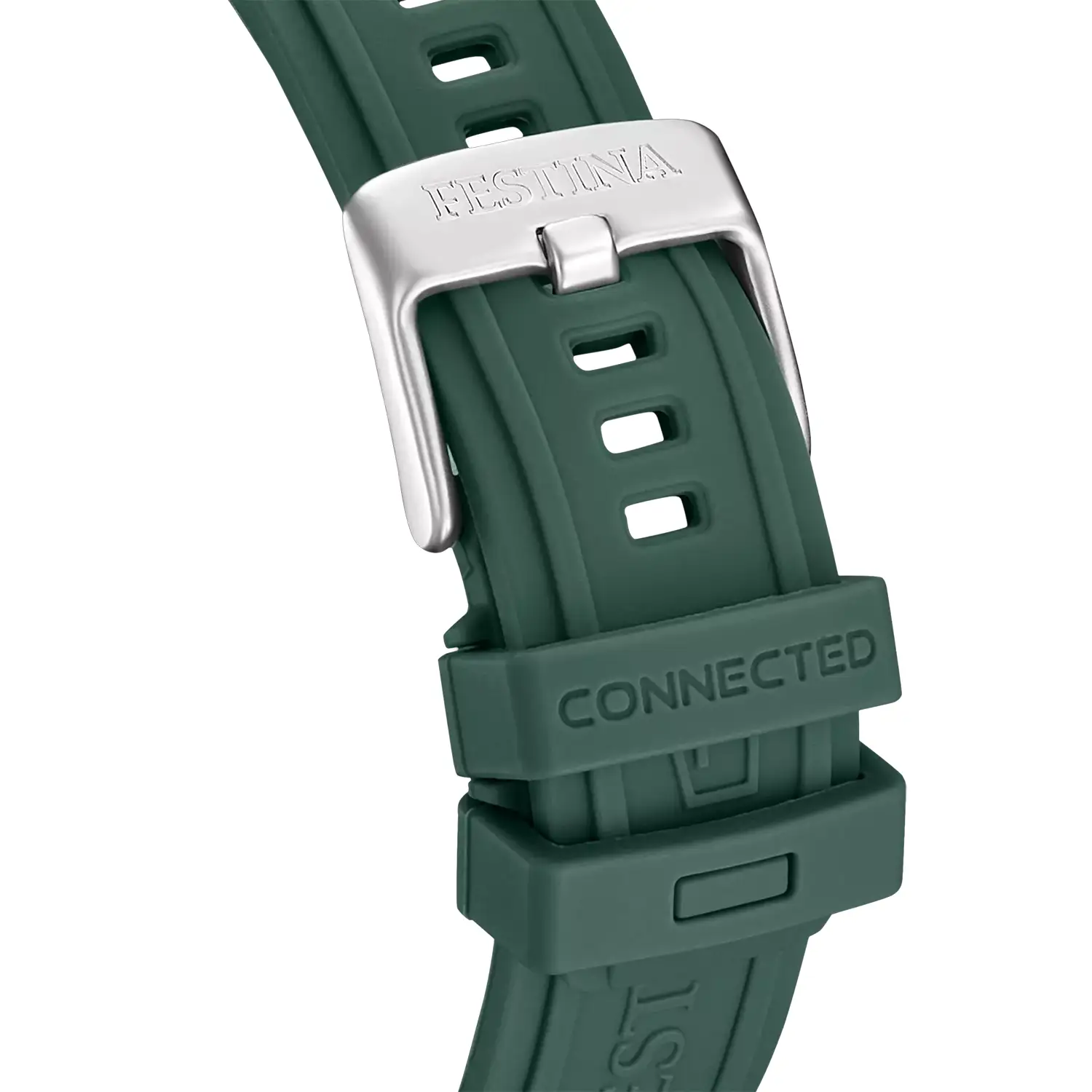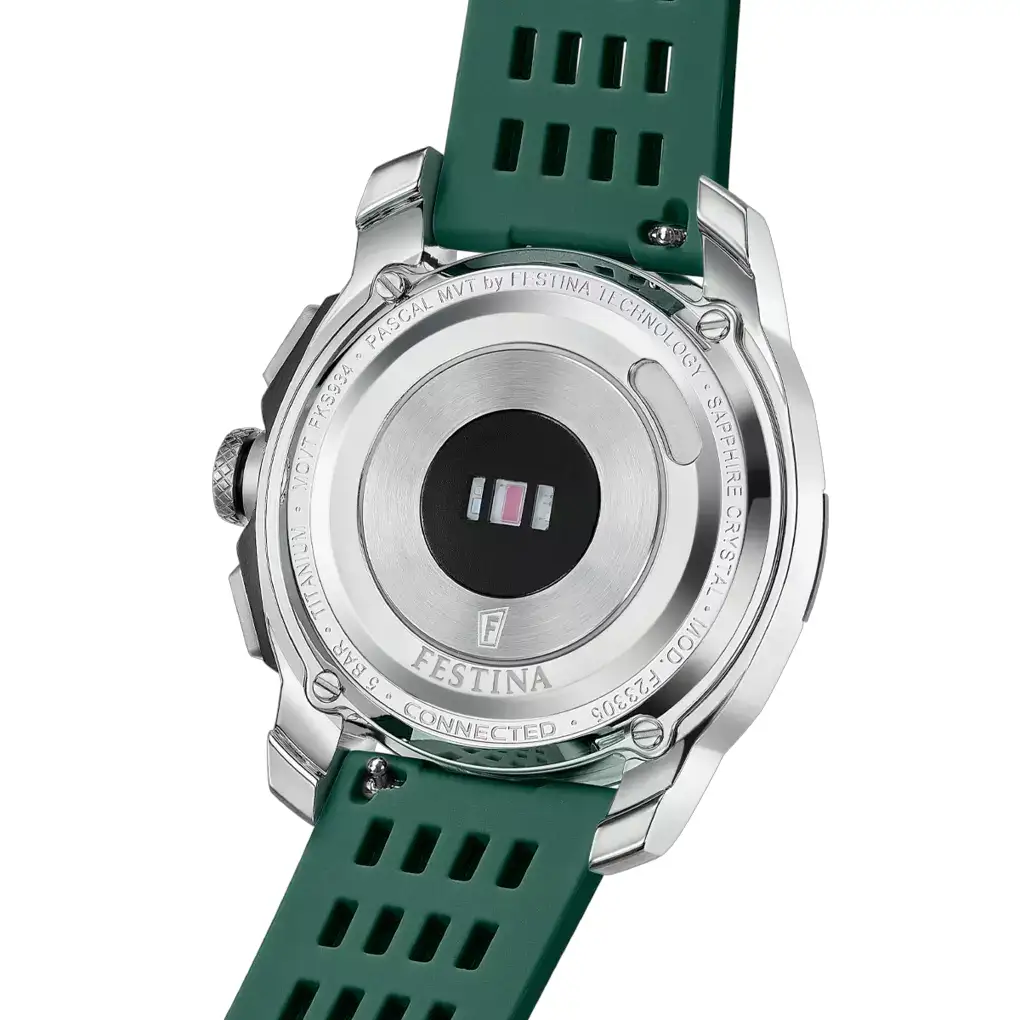 Festina Connected Full D F23305/1 je volbou pro osoby, které oceňují materiály prémiové třídy a moderní technologická řešení podaná ve střídmé formě. Zelené provedení pásku a detailů dodává konstrukci sportovní charakter, který se dokonale kombinuje se šedým odstínem titanu. Hybridní konstrukce zajišťuje, že zařízení si zachovává prestižní vzhled klasického modelu a svou inteligentní povahu odhaluje pouze tehdy, když je to vyžadováno. Jedná se o odolný pánský smartwatch, který se osvědčí jak při formálních setkáních, tak při intenzivních aktivitách v terénu.