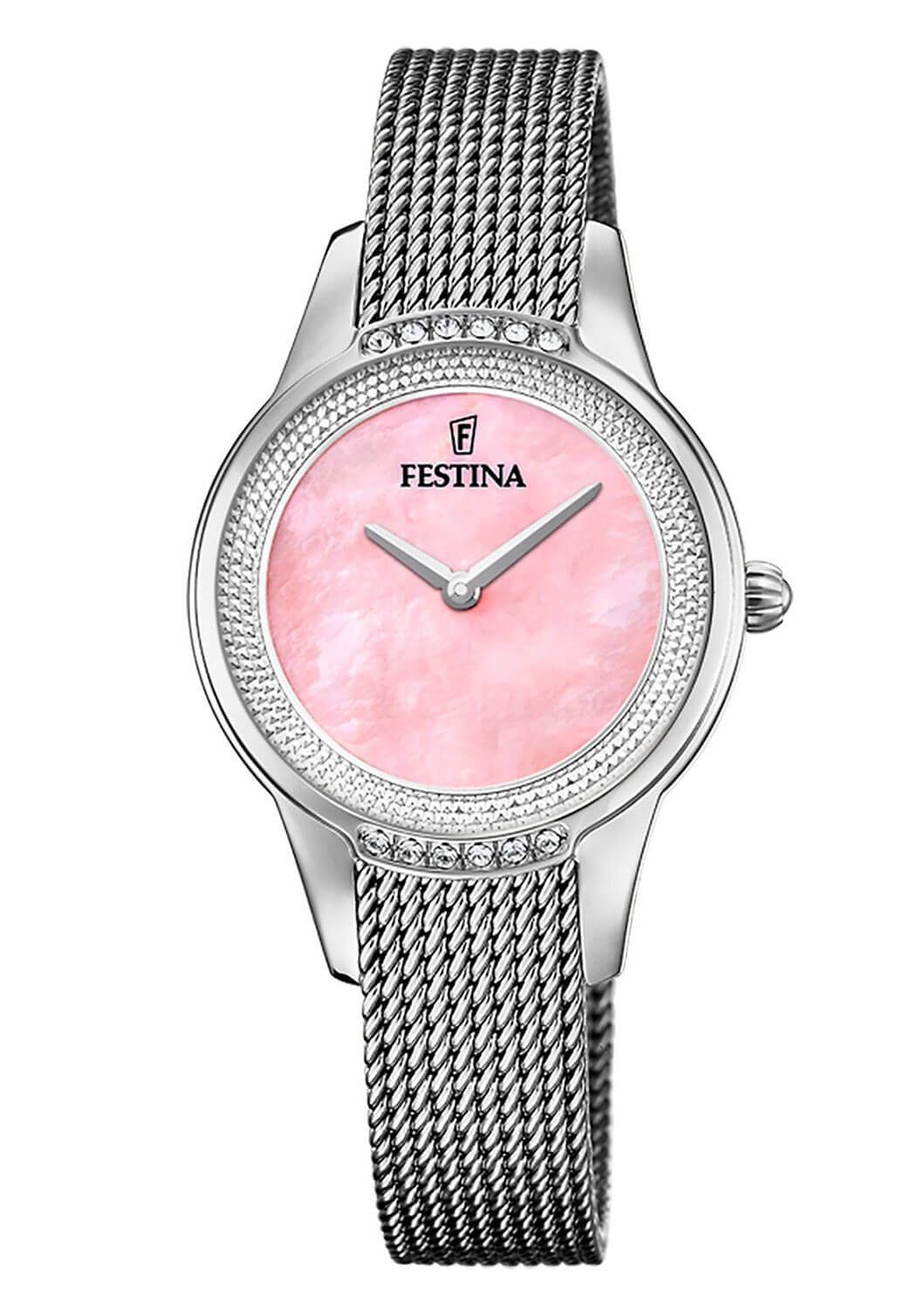 Dámské hodinky Festina Mademoiselle F20494/5 jsou kvintesencí elegance a vytříbeného stylu, který zdůrazňuje ženskost a jemnost. Byly vytvořeny s myšlenkou na ženy, které oceňují klasickou krásu spojenou s moderním designem. Výjimečný ciferník z perleti, který se třpytí jemnými odstíny, připomíná jedinečné kouzlo přírody a dodává hodinkám luxusní charakter. Jeho okolí zdobí jemné krystaly, které dodávají celku lesk a činí tento model perfektní volbou jak pro každodenní nošení, tak pro výjimečné příležitosti.