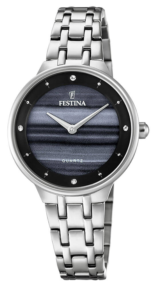 Elegantní dámské hodinky Festina Mademoiselle F20600/B jsou časomírou vytvořenou pro ženy, které hledají doplněk jemný, a přitom poutající pozornost. Šedý číselník s hlubokým, třpytivým odstínem vyniká decentním rozmístěním krystalků sloužících jako indexy, což celku dodává šperkový charakter. Štíhlé pouzdro o průměru 30,50 mm dokonale odpovídá potřebám dámského zápěstí a spojuje lehkost s vytříbeným stylem.